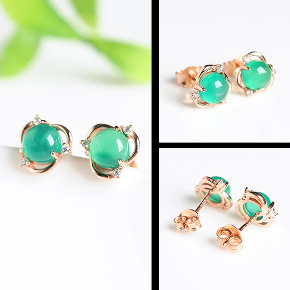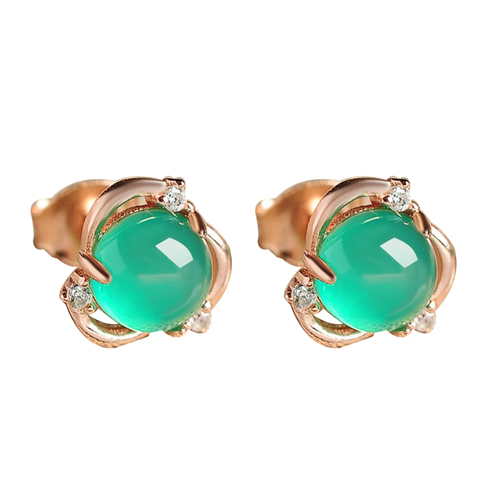 Женские серьги из искусственного нефрита с инкрустированным цветком, посеребренные серьги-гвоздики, вечерние ювелирные изделия, подарок, белый, зеленый цвет