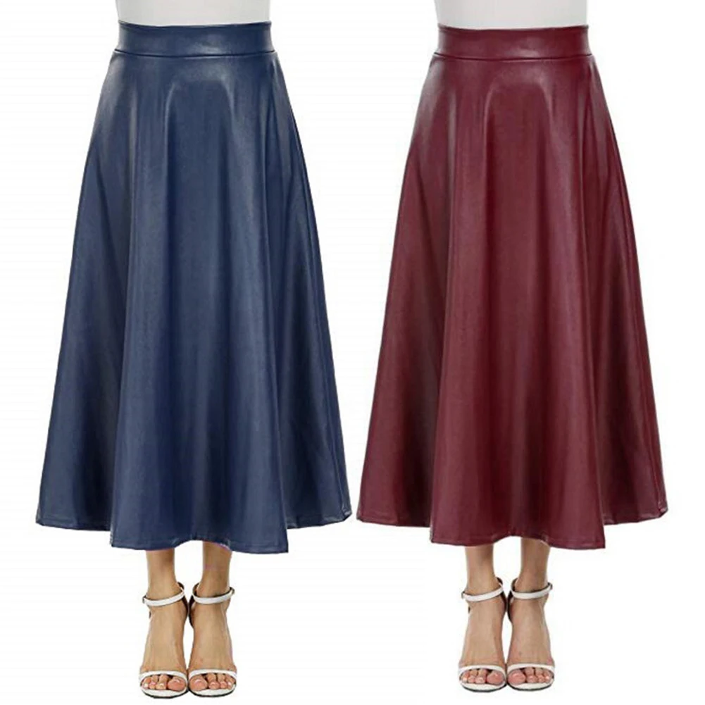 Модная женская однотонная длинная юбка из искусственной кожи с высокой талией на молнии