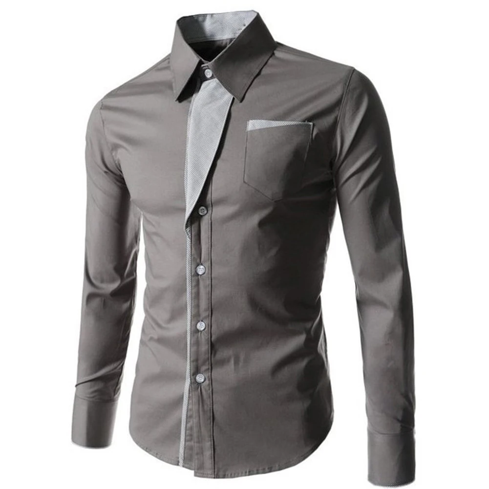 Модная мужская рубашка с воротником-стойкой, с длинным рукавом, с цветным блоком, на пуговицах, облегающий Топ