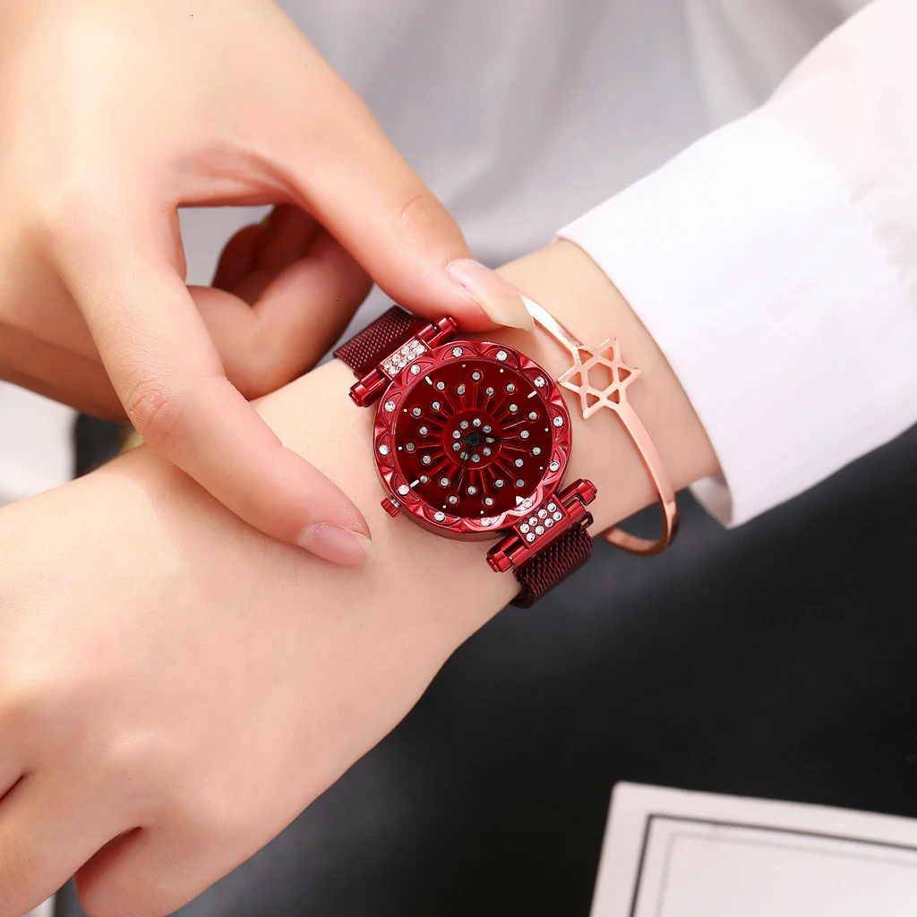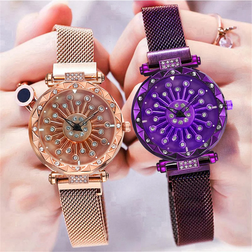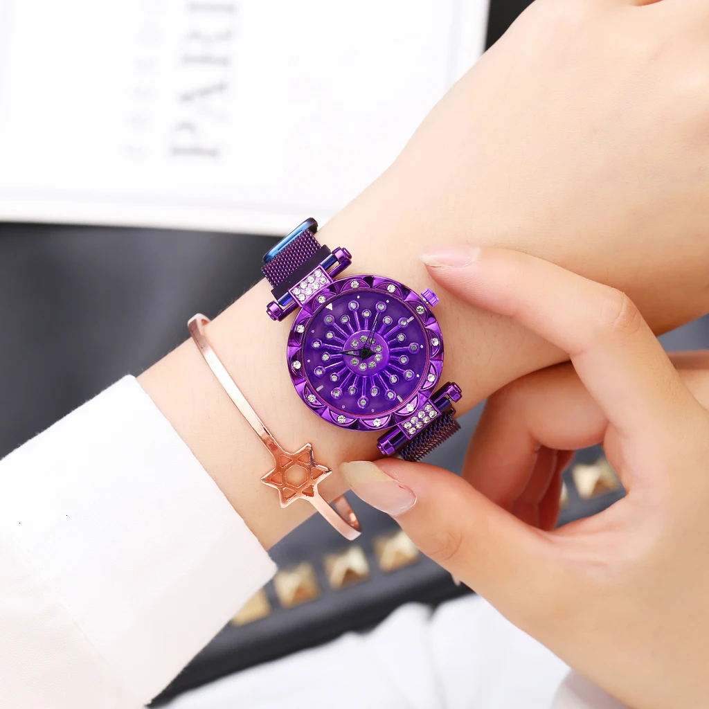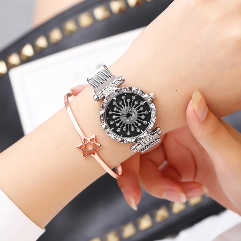 Женские роскошные часы из нержавеющей стали с волшебной пряжкой, доставка, бриллиантовые часы, кварцевые часы, женские часы