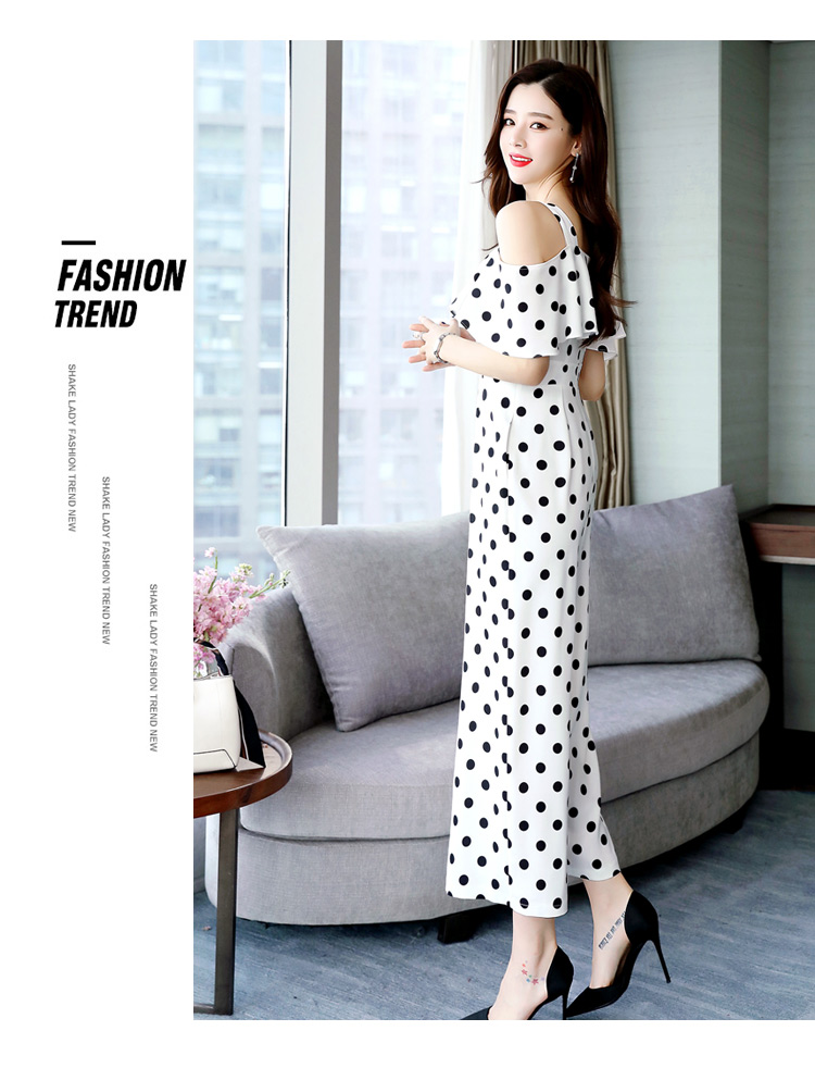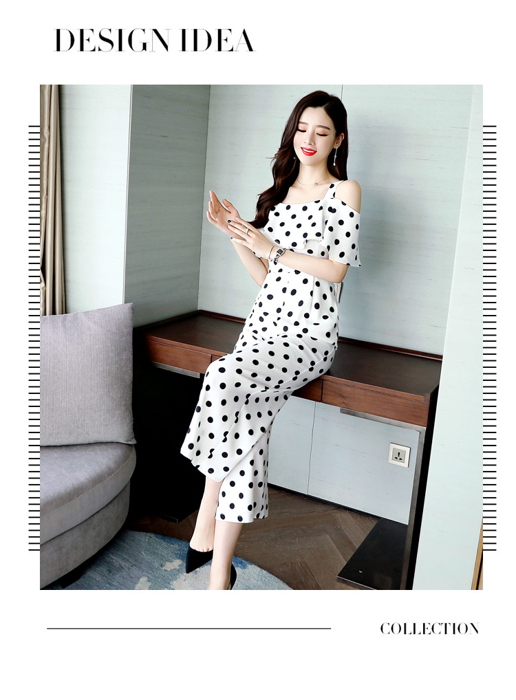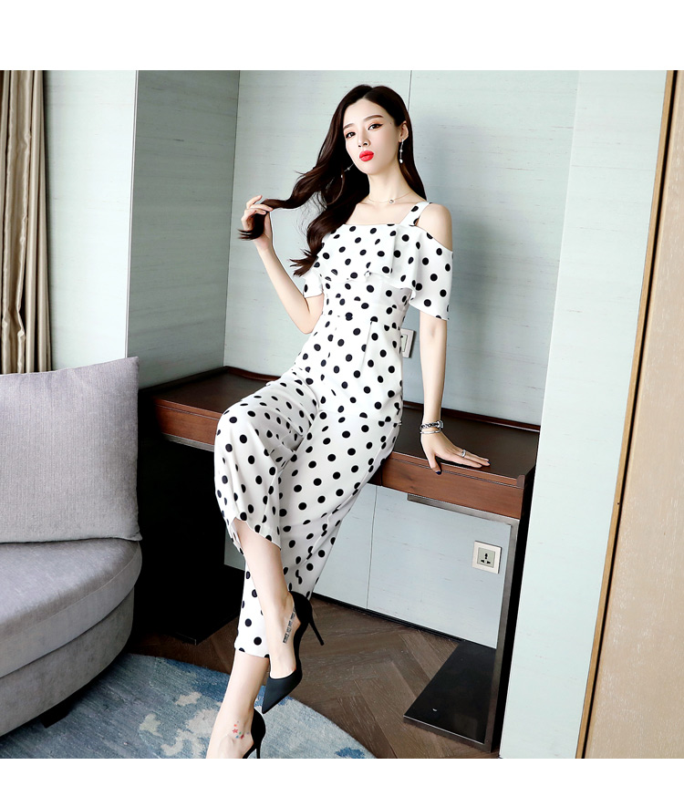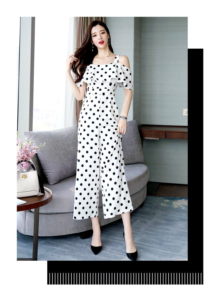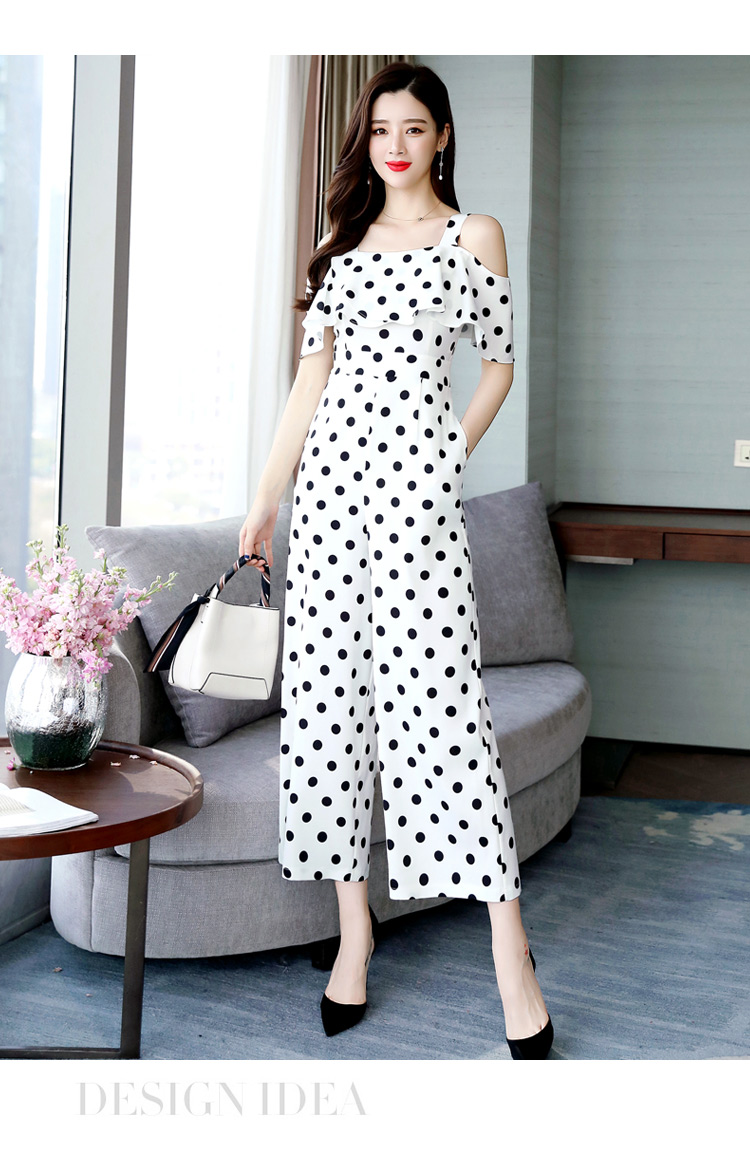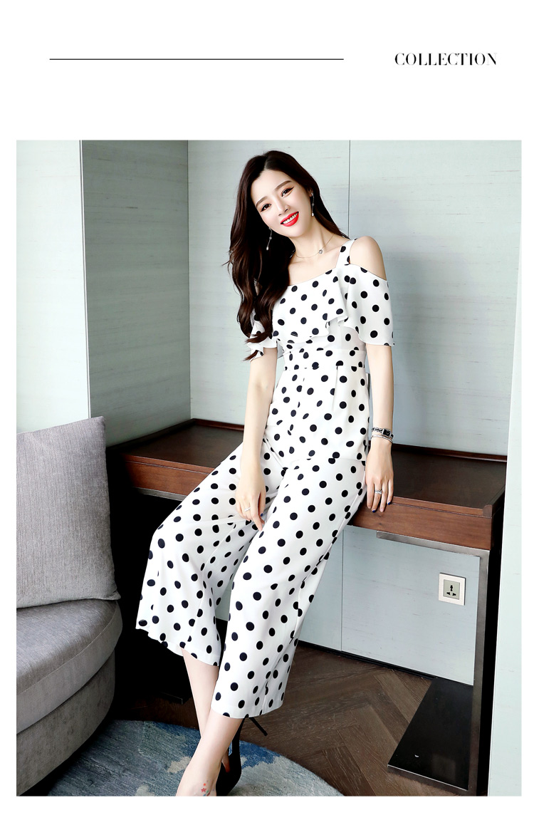 Новинка 2020, летний женский длинный комбинезон в горошек, комбинезоны с коротким рукавом, повседневные Комбинезоны, женские широкие брюки, комбинезон DG651