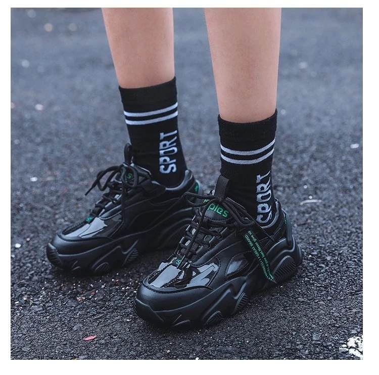2020 женские кроссовки на платформе корейские модные черные для тенниса толстой
