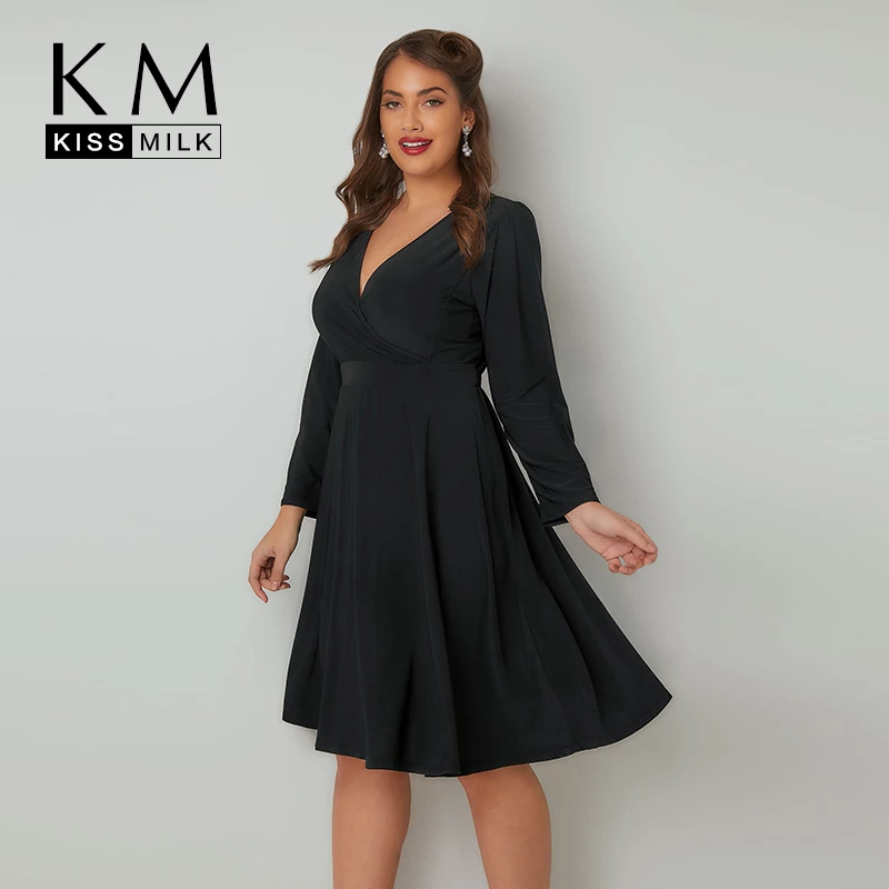 Женское Платье До Колена Kissmilk однотонное платье с v-образным вырезом и высокой