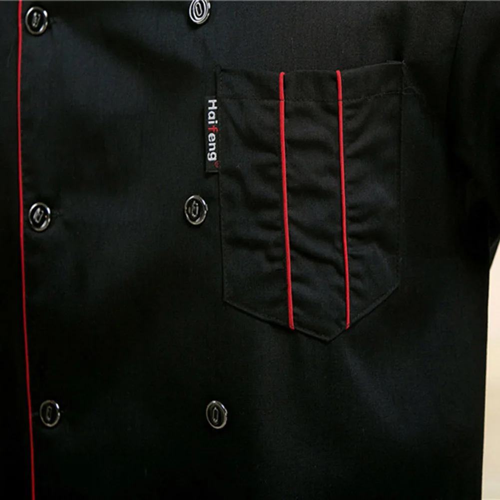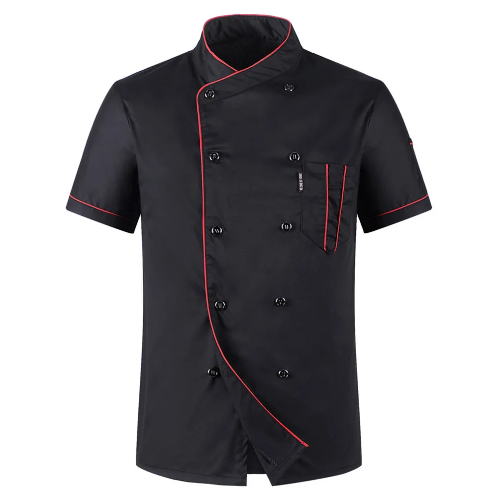 Men Short Sleeve Stand Collar Double-breasted Chef Waiter Uniform Loose T-shirt