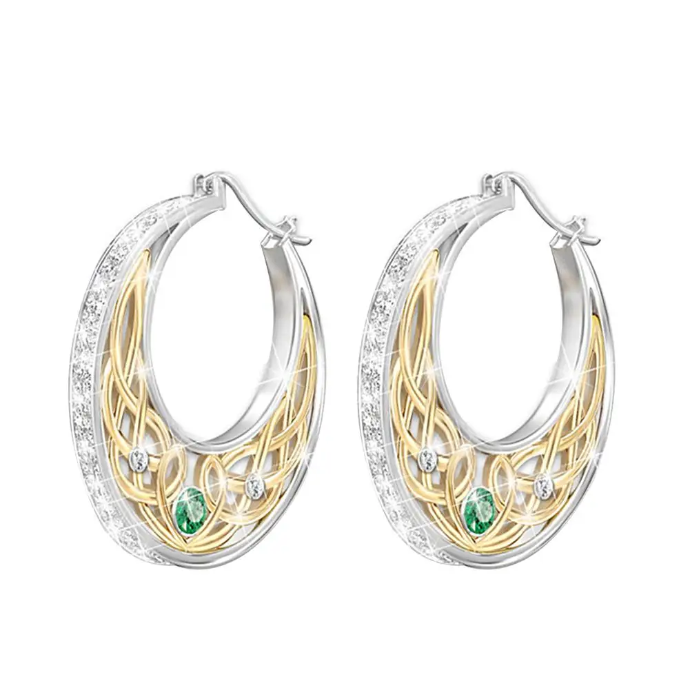 Женские винтажные серьги-кольца с искусственным изумрудом, инкрустированные цветами, вечерние ювелирные изделия, подарок