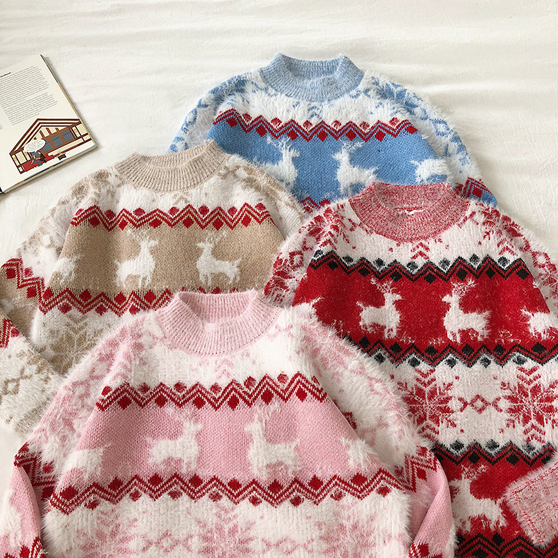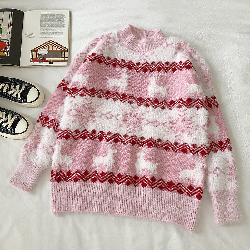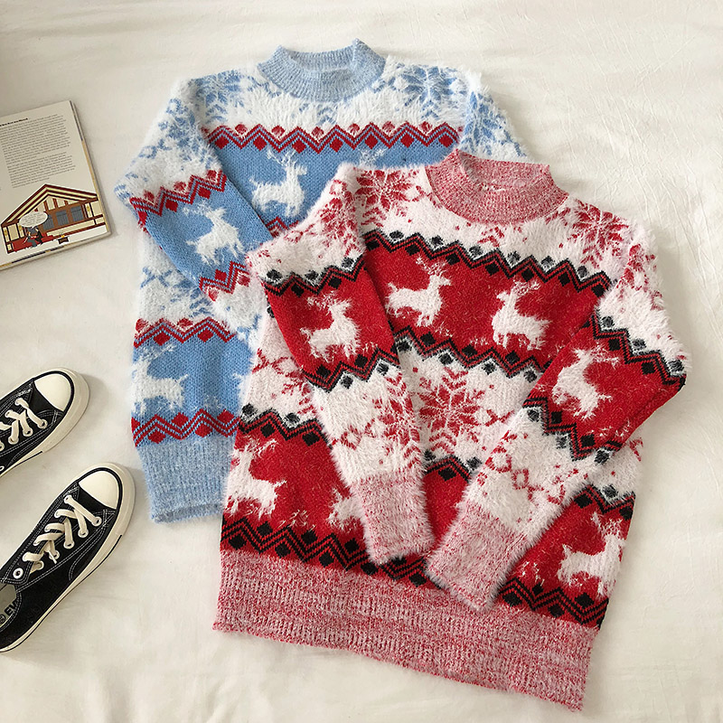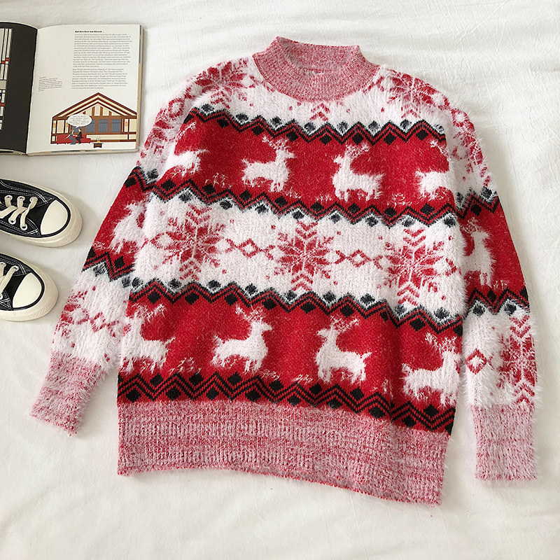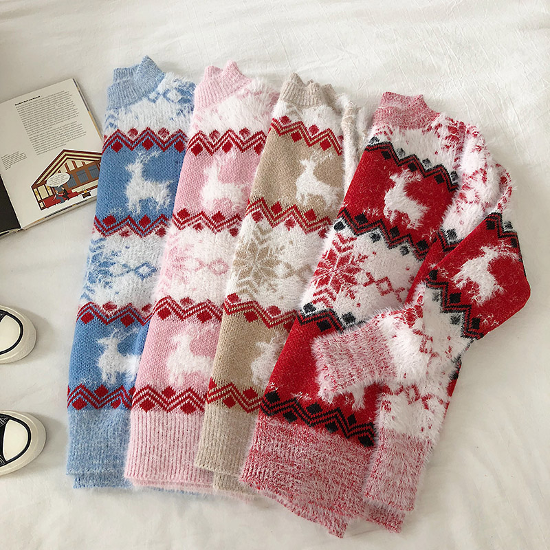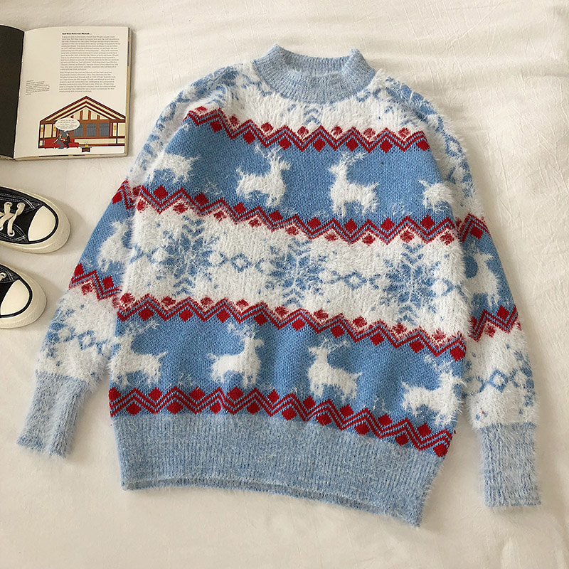 Женский плюшевый свитер с имитацией норки в Корейском стиле, Свободный теплый свитер с длинными рукавами, милый Рождественский олень, зима 2019