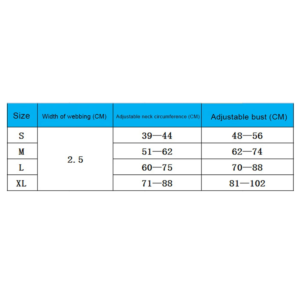 Размер XL: Ширина: 2,5 см/0,98 дюйма, регулируемая окружность шеи: 71 см-88 см/27,96 дюйма-34,65 дюйма, обхват груди: 81 см-102 см/31,89 "-40,16" (прибл.)