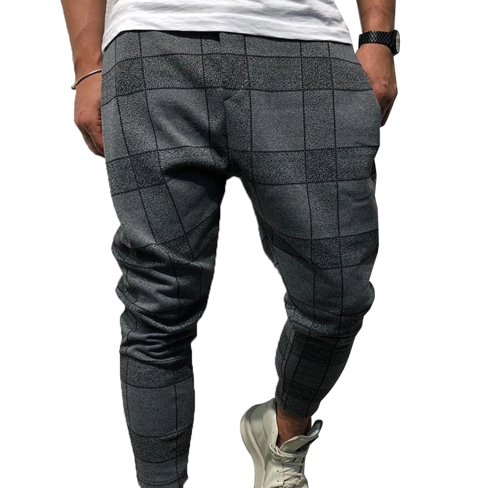 Модные мужские 3D клетчатые брюки с карманами, брюки-карандаш, повседневная одежда для занятий спортом, в тренажерном зале