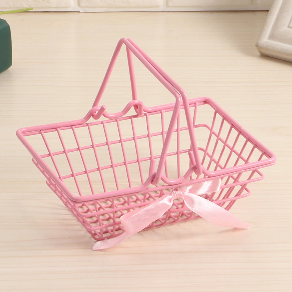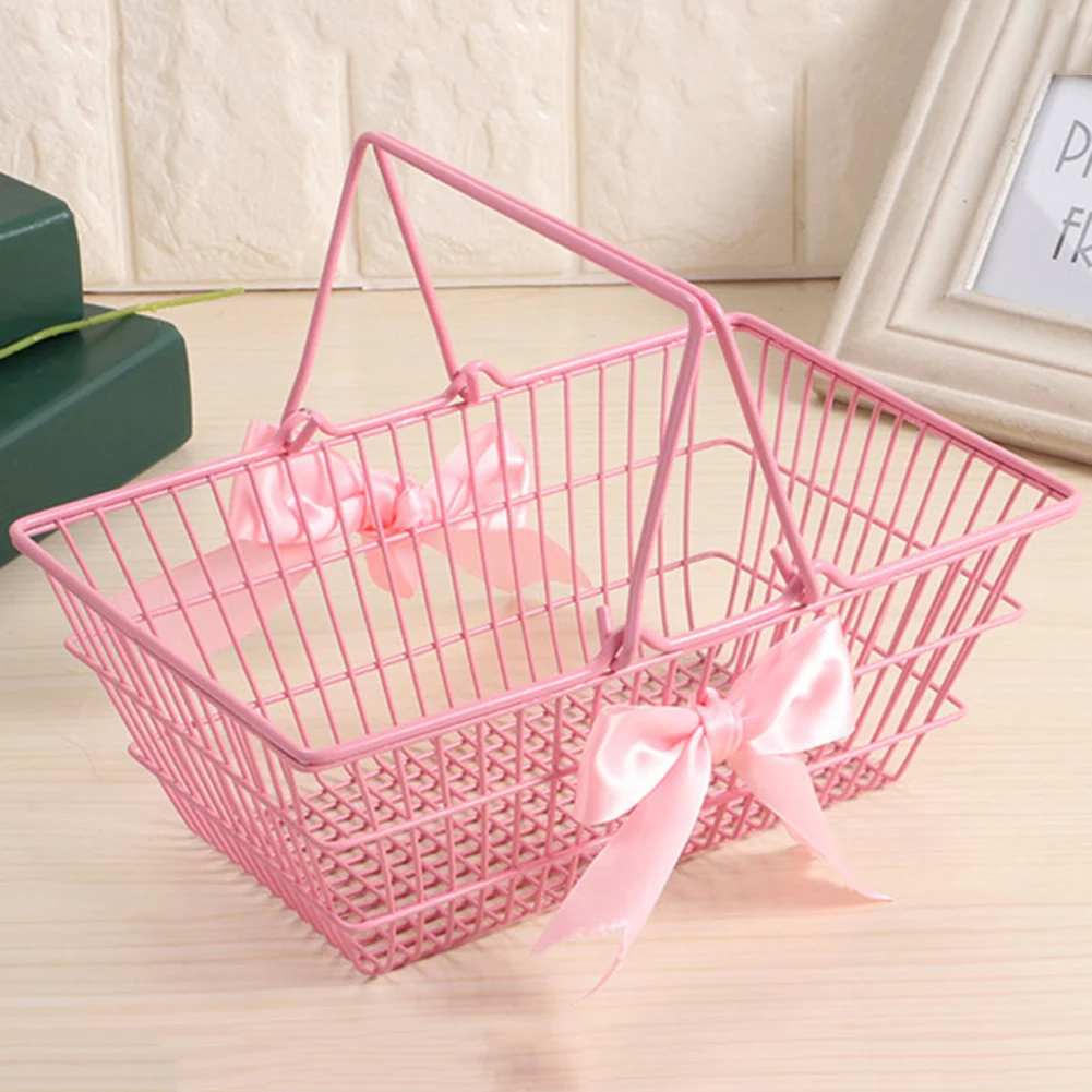Мини-железная настольная Косметическая корзина для мелочей Органайзер с бантиком