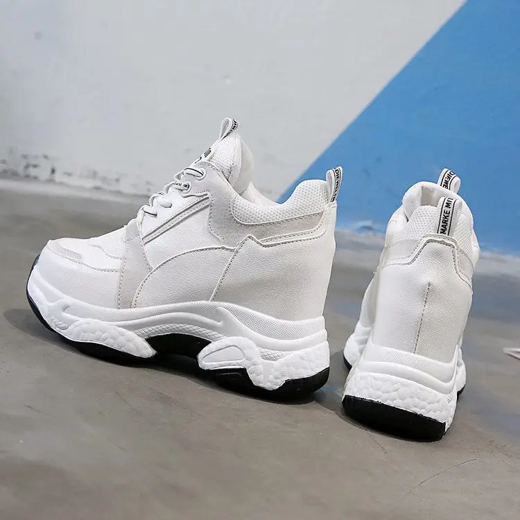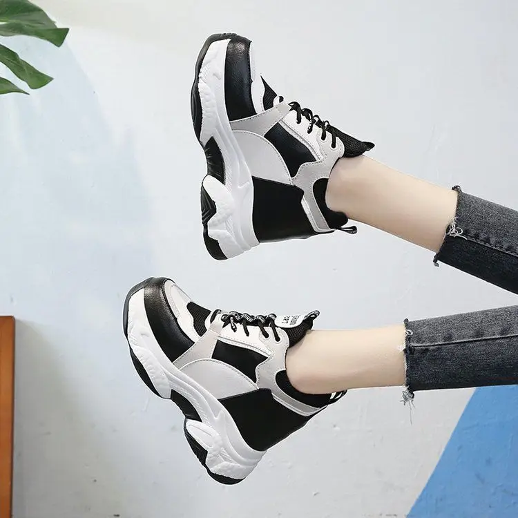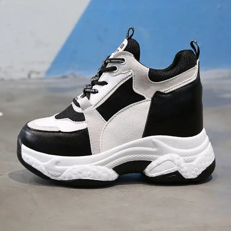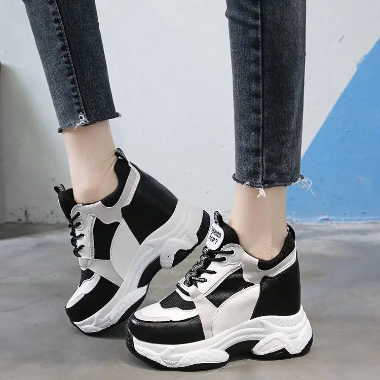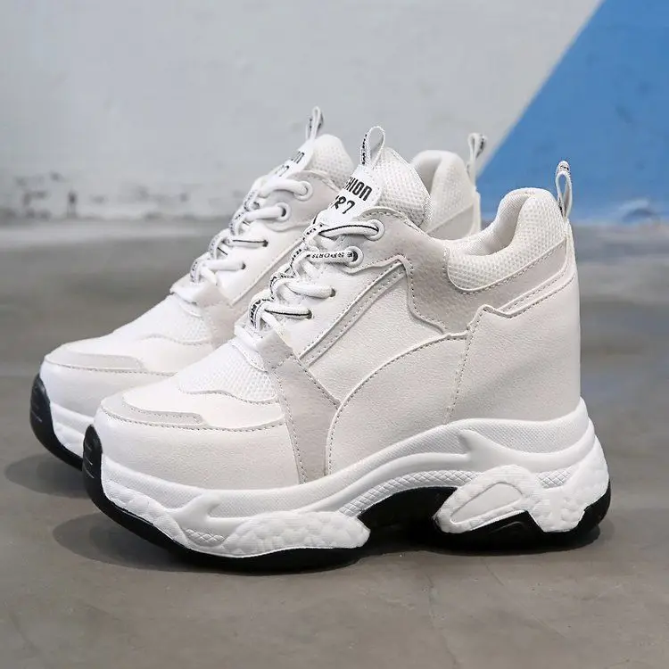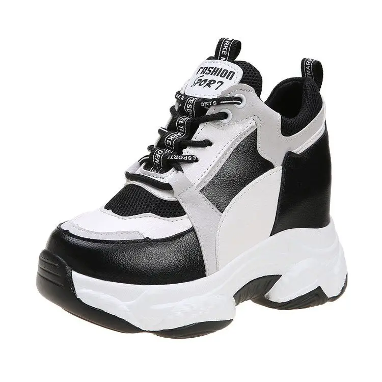 Женские массивные кроссовки на танкетке модные повседневные кожаные платформе 10