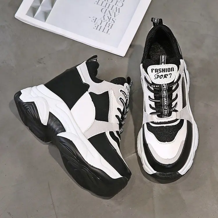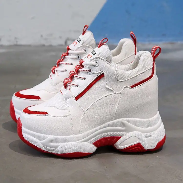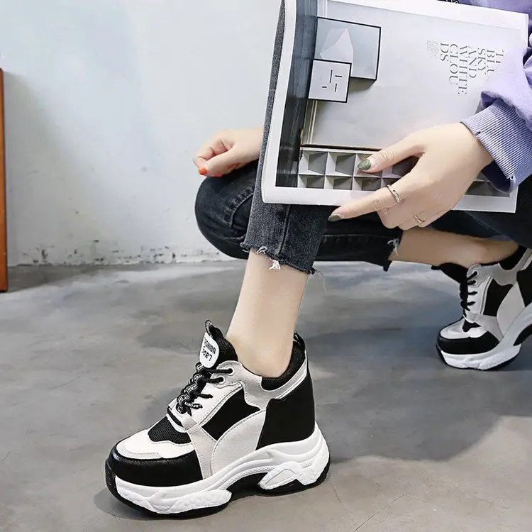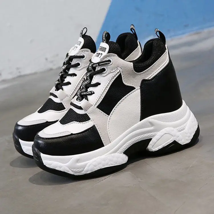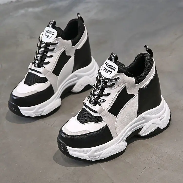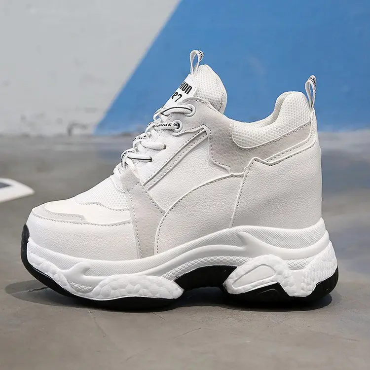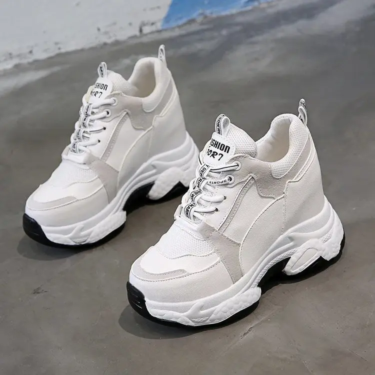 Женские массивные кроссовки на танкетке модные повседневные кожаные платформе 10