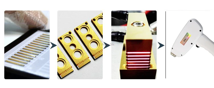 Диодное лазерное оборудование принимает 808 нм, особенно эффективно для волосяных фолликул меланоцитов без травм окружающей ткани. Лазерный светильник может быть поглощен валом волос и волосяными фолликулами в меланине и преобразован в тепло, тем самым увеличивая температуру волосяного фолликула. Когда температура поднимается достаточно высоко, чтобы необратимо повредить структуру волосяного фолликула, которая исчезает после периода естественных физиологических процессов волосяных фолликул и таким образом достигает цели постоянного удаления волос.