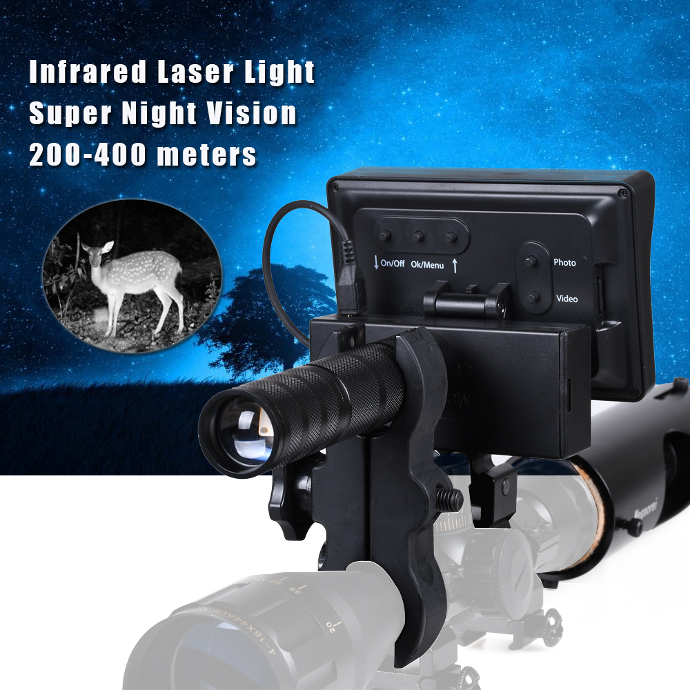 * 4,3 дюймов четкий дисплей снимки экрана, 360 градусов Регулируемая камера, 3W Расширенный Раздвижные Инфракрасный фонарик можно подобрать 200 м лазерный дальномер max в темное время суток. (Батарейки в комплект не входят)