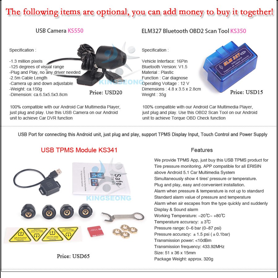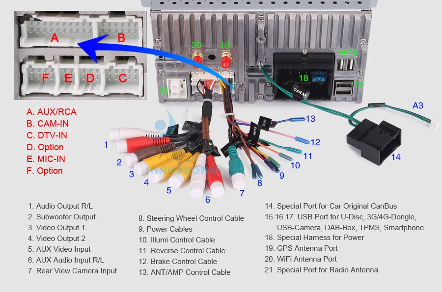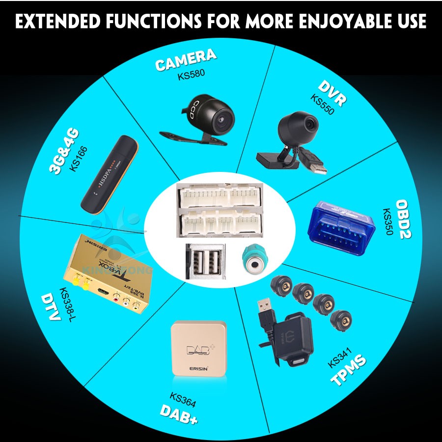 -Положение: 3 USB на задней панели, может быть подключен к медиа, 3G/4G, TPMS, камере, DAB + Box, смартфону