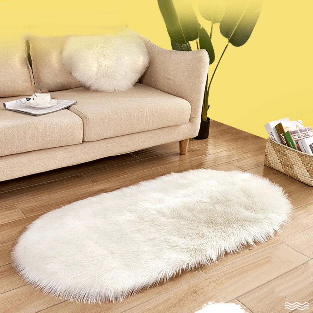 Креативный домашний искусственный шерстяной плюшевый ковер, теплый коврик для ног, диван, Овальный коврик для гостиной