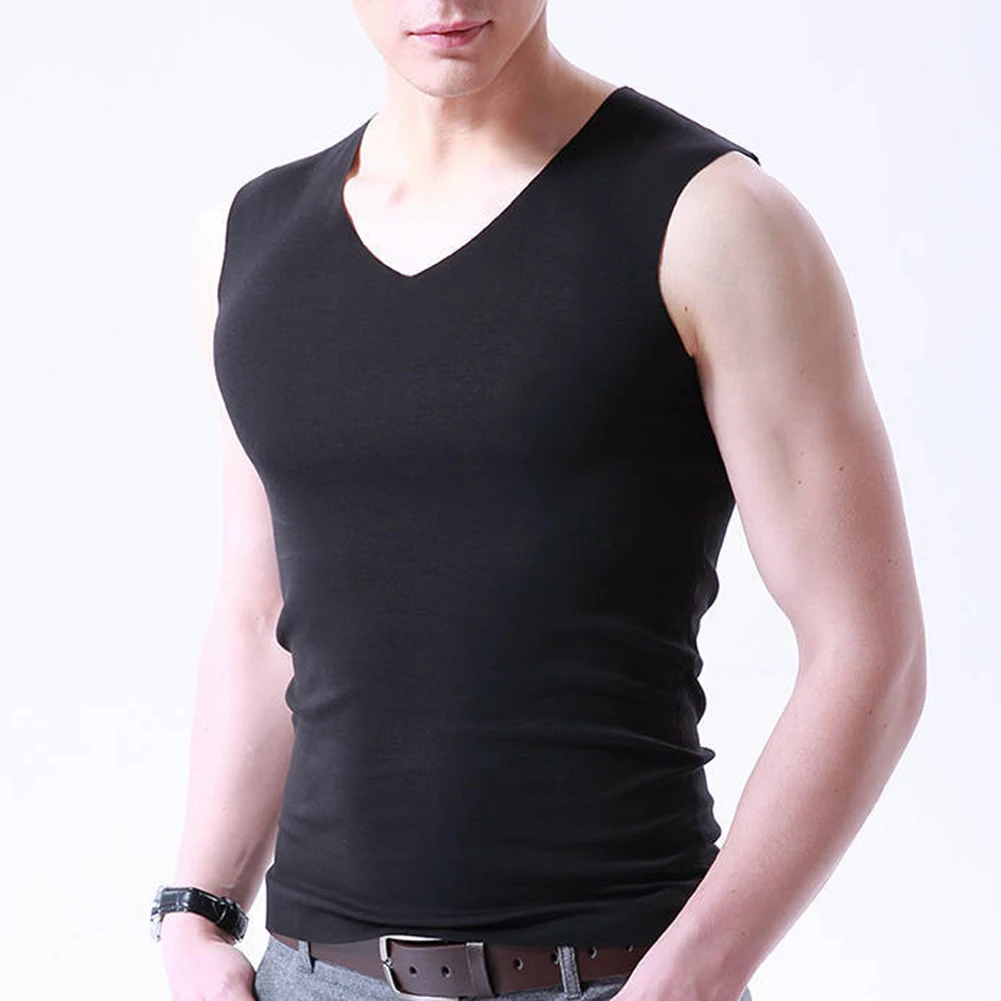 Мужской спортивный однотонный топ без рукавов с v-образным вырезом размера плюс