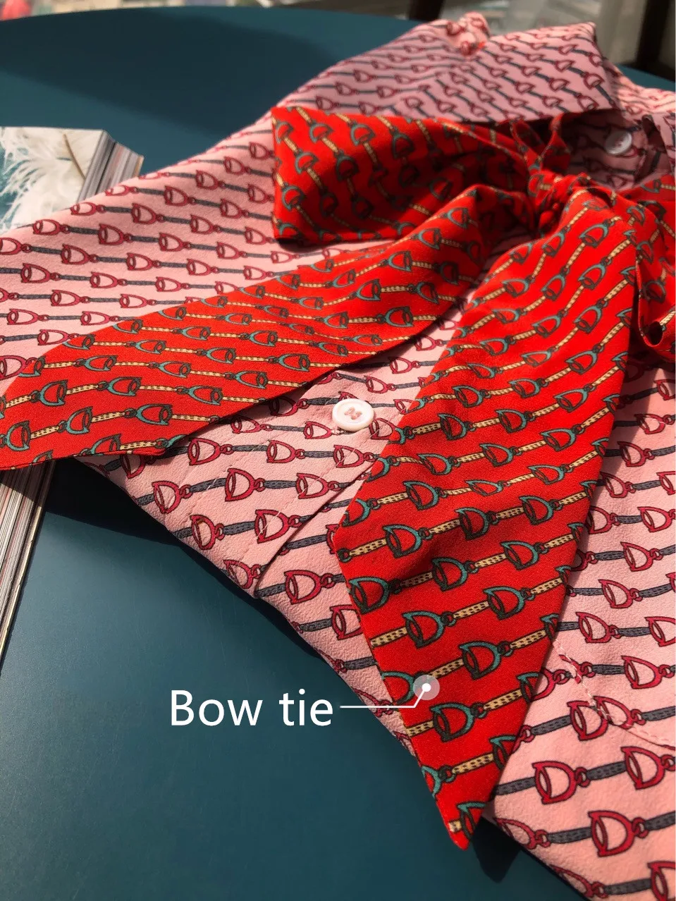 Блузка женская шифоновая с длинным рукавом и галстуком-бабочкой на весну осень |