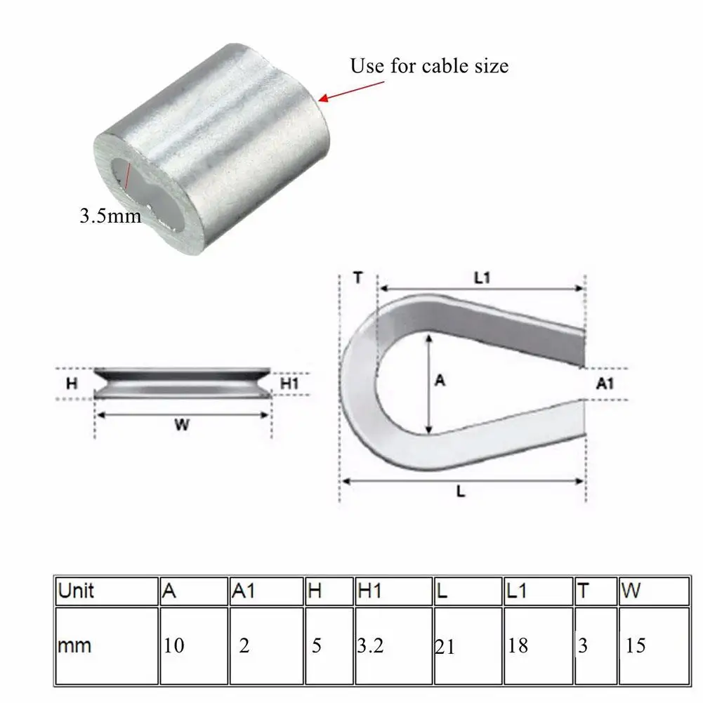 3,0 мм thimbles подходит для проволочной веревки из нержавеющей стали 3,2 мм.
