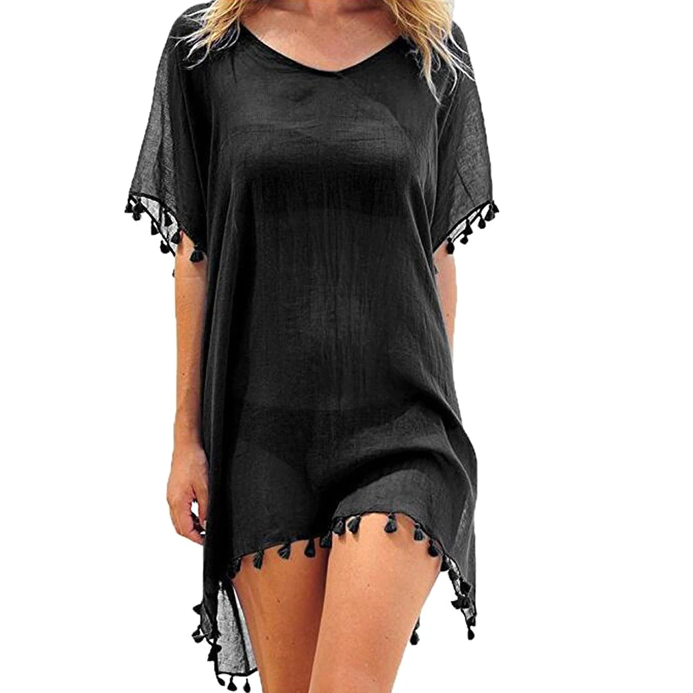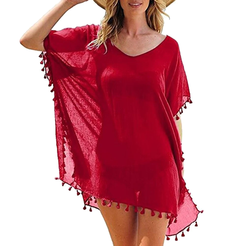 Летняя женская пляжная одежда с кисточками, купальник, сплошной цвет, бикини, Пляжное Платье