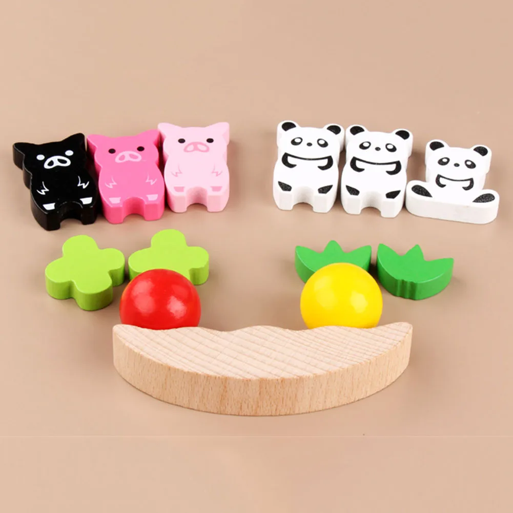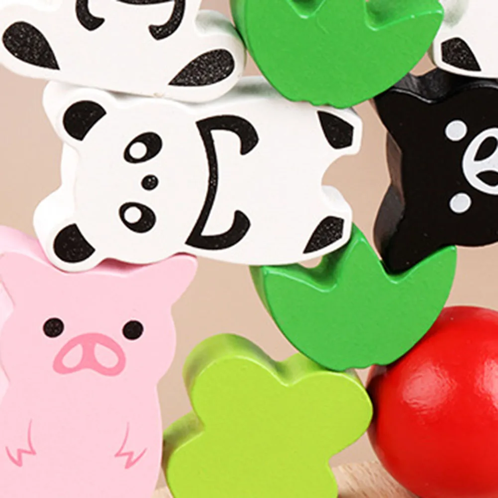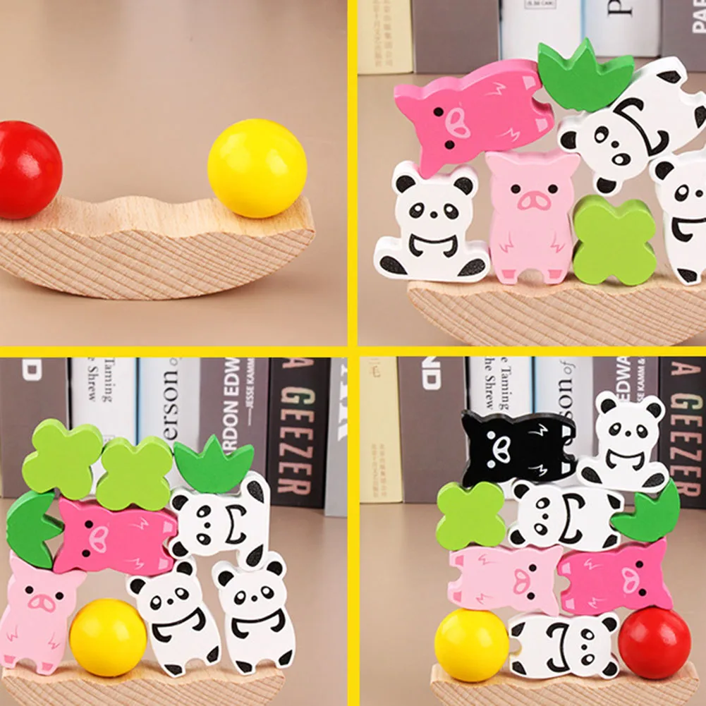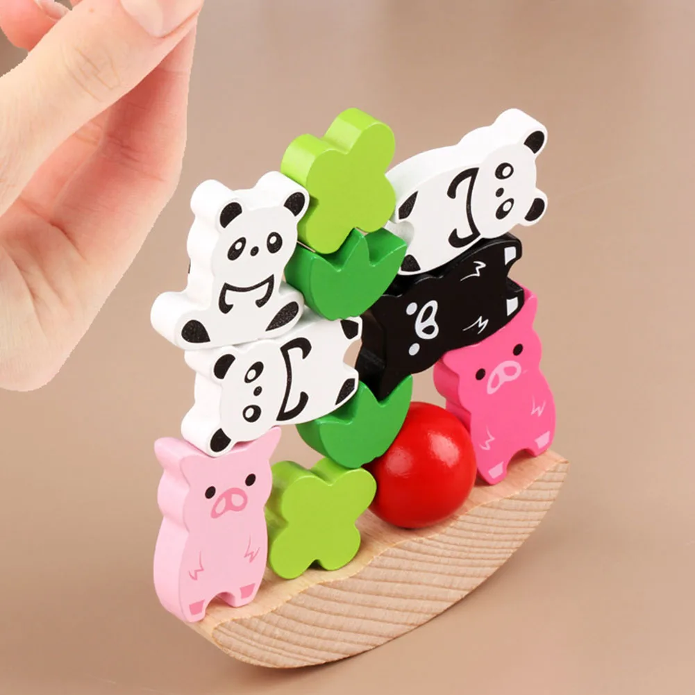 1Set Kids Stacking Blocks Toy Wooden Panda Pig Animal Moon Blocks Stacking Balance Game Development Kids Educational Toy