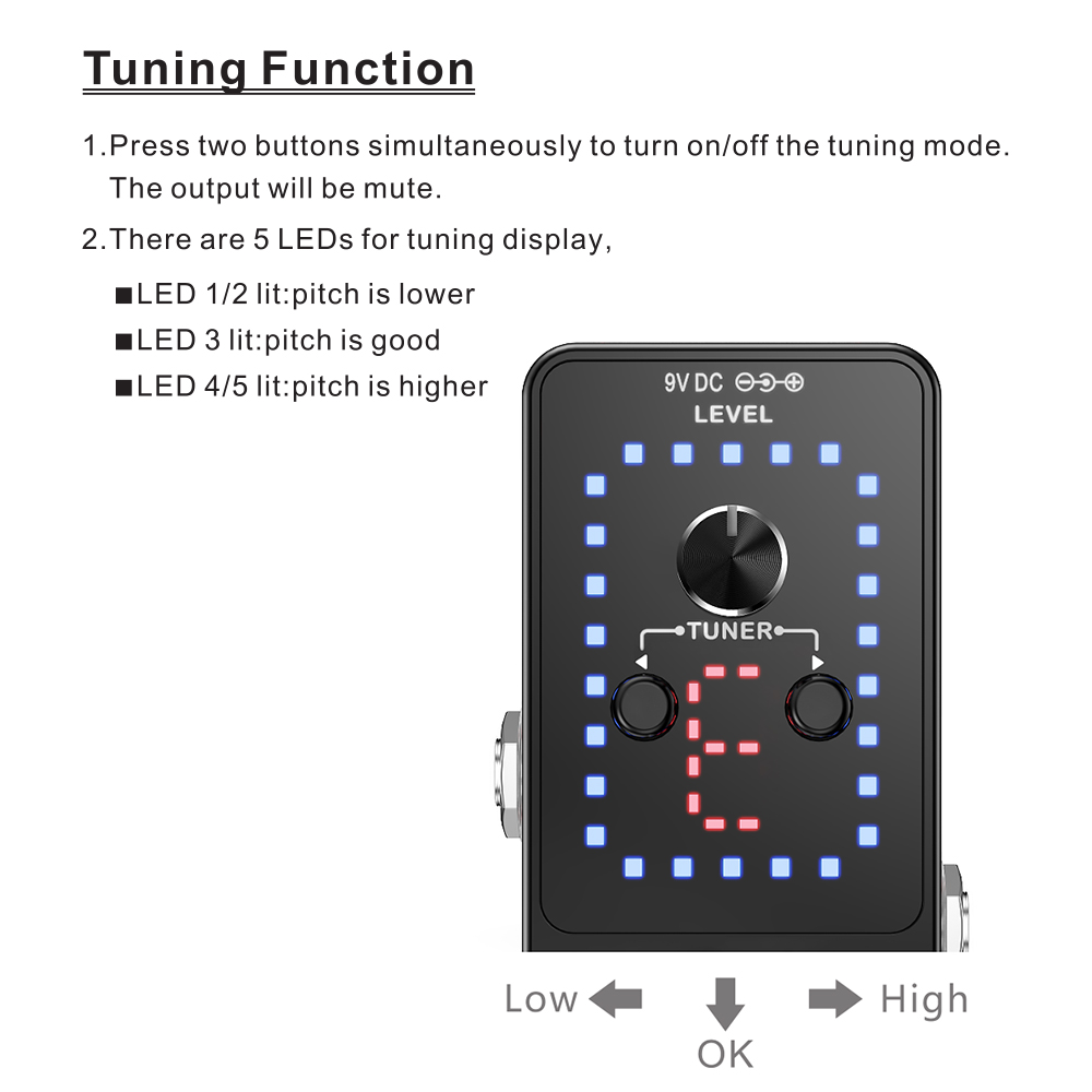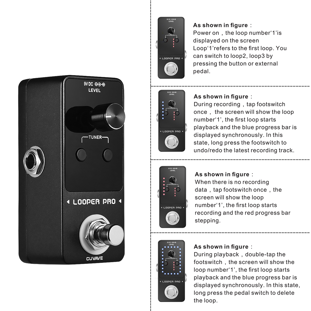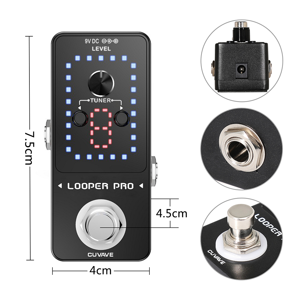 Гитарная педаль, 9 петель, всего 40 минут, педаль для гитары, Встроенный тюнер, светодиодный дисплей