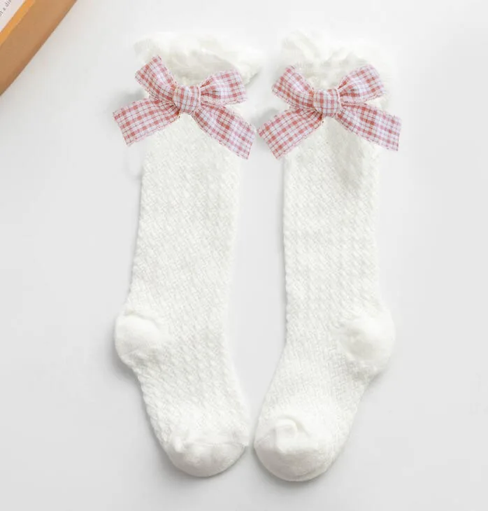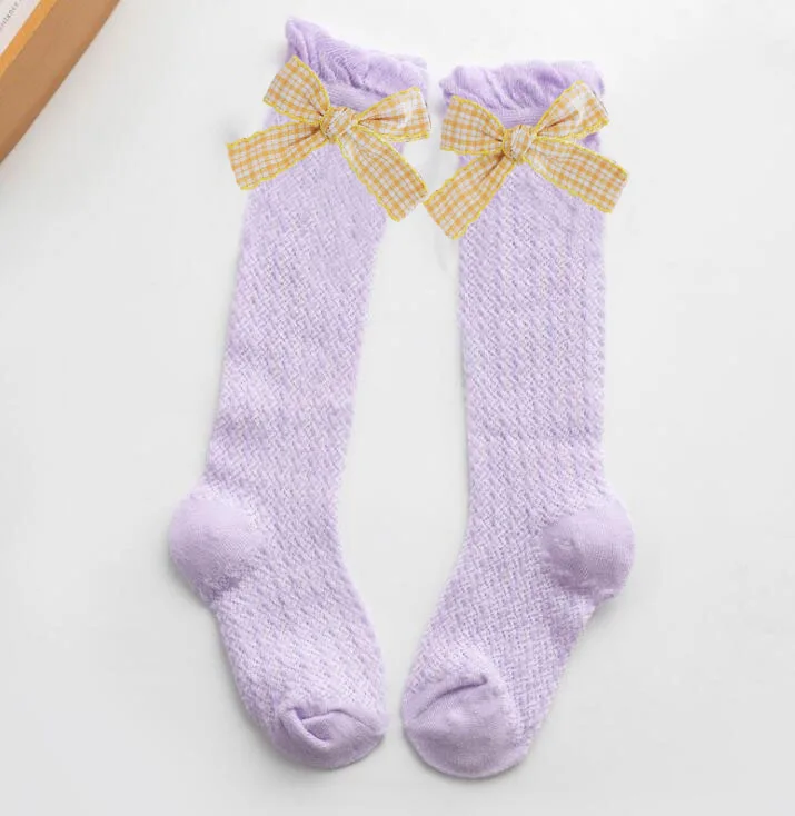 Носки для девочек с бантом, длинные летние сетчатые Хлопковые гольфы для маленьких принцесс, носки для новорожненных младенцев, 1 пара/2 шт.