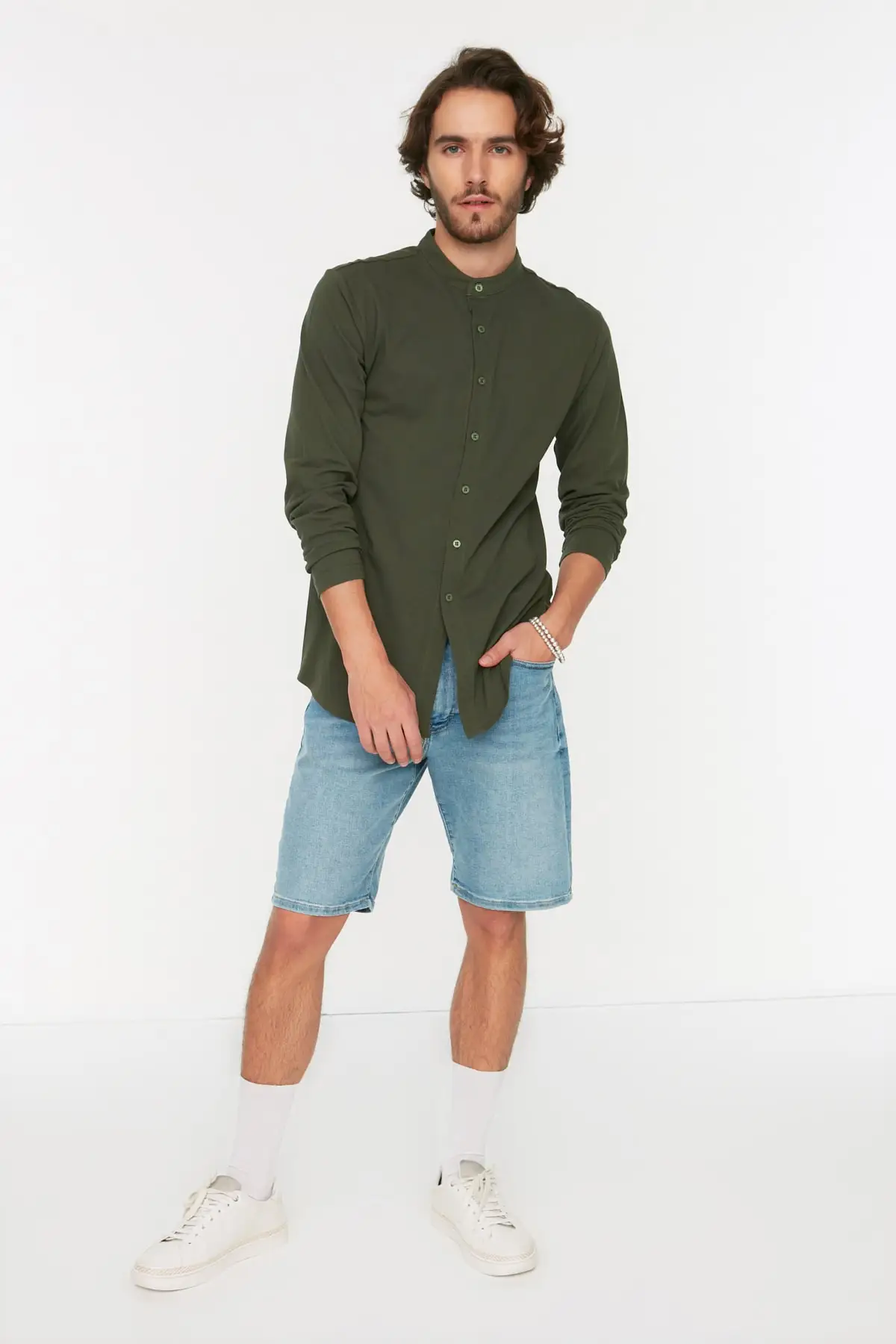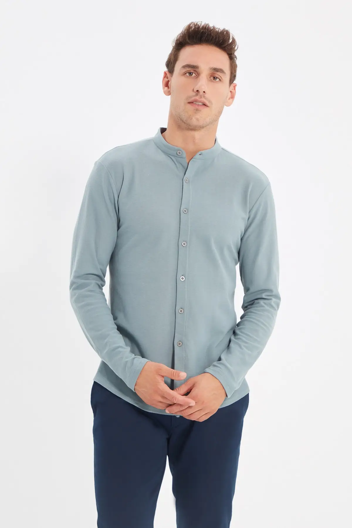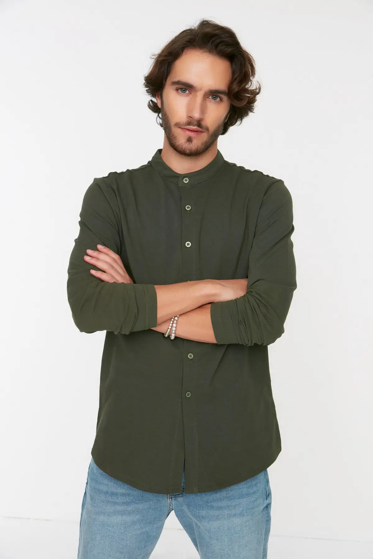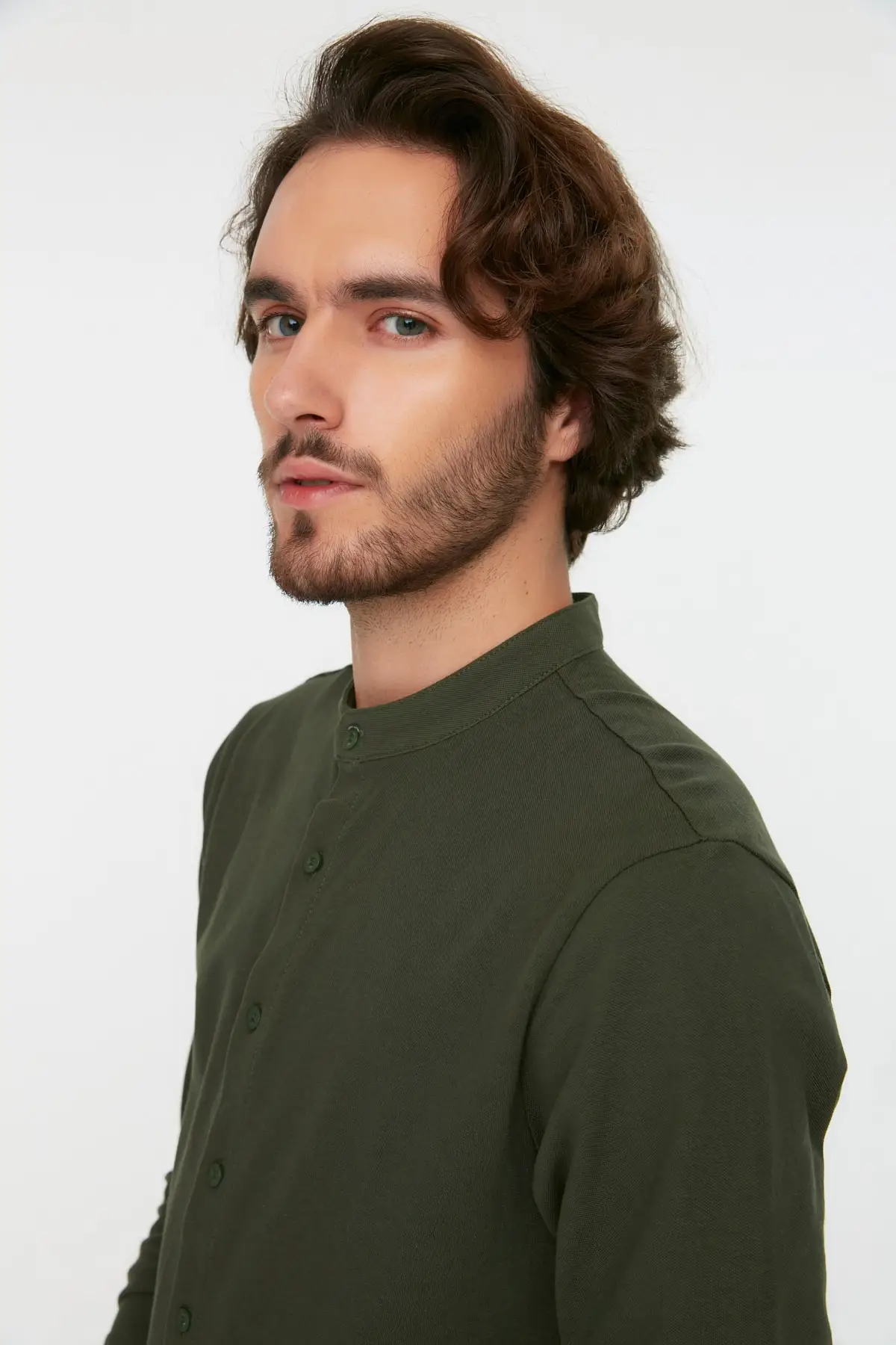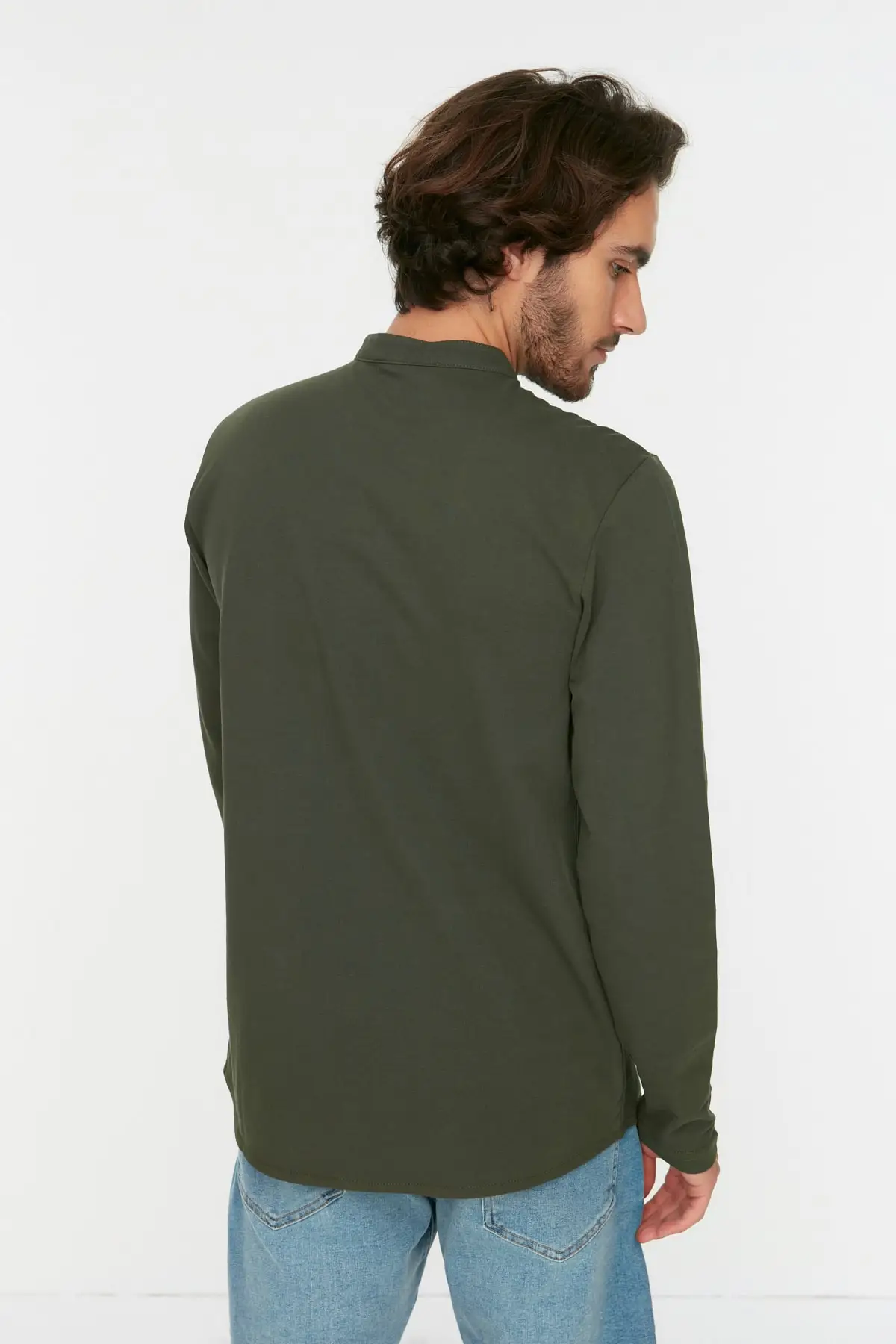 Мужская облегающая трикотажная рубашка цвета хаки с длинным рукавом TMNSS20GO0293