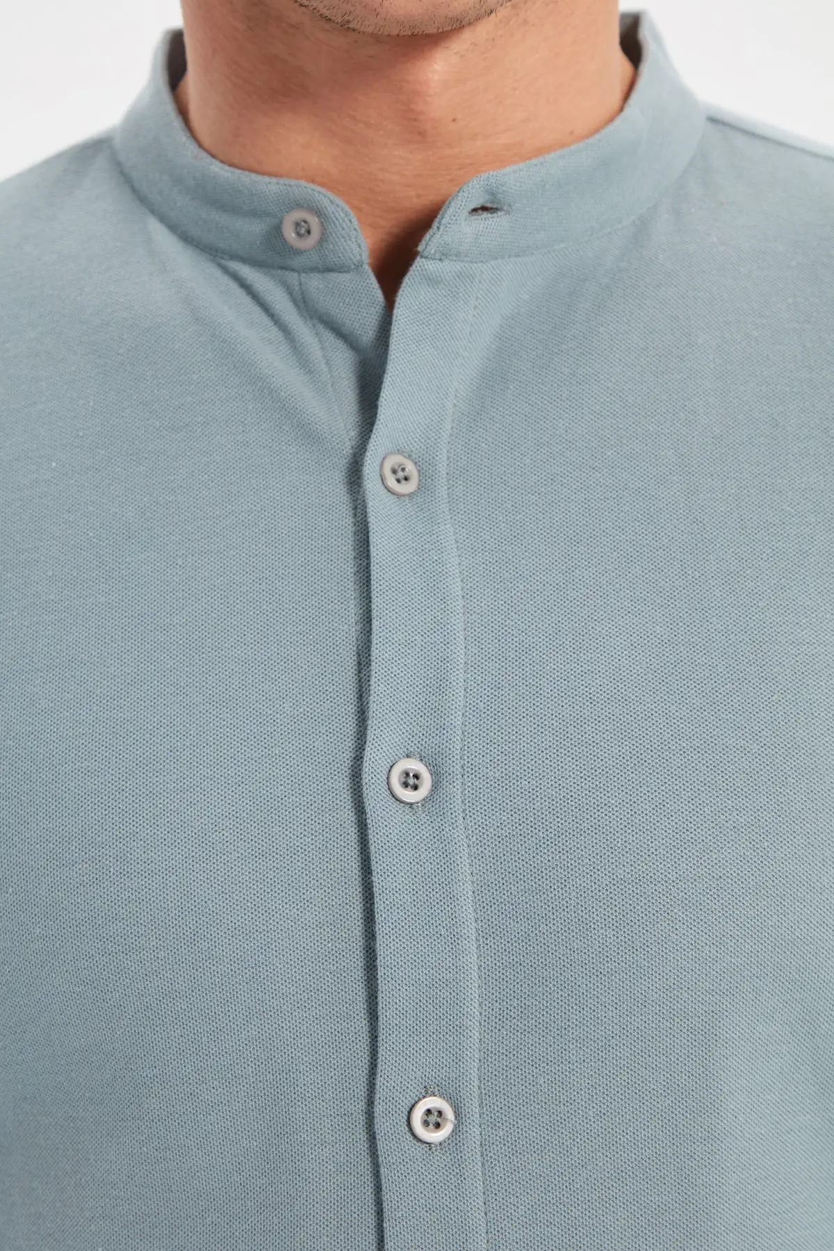 Серая мужская приталенная трикотажная рубашка с длинным рукавом TMNSS20GO0293