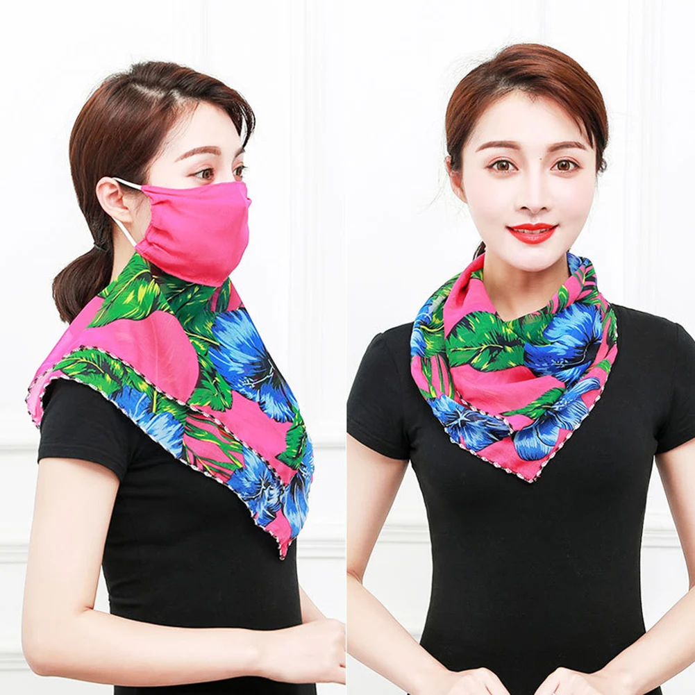 Женская Солнцезащитная дышащая шифоновая маска для лица с цветочным принтом, вуаль