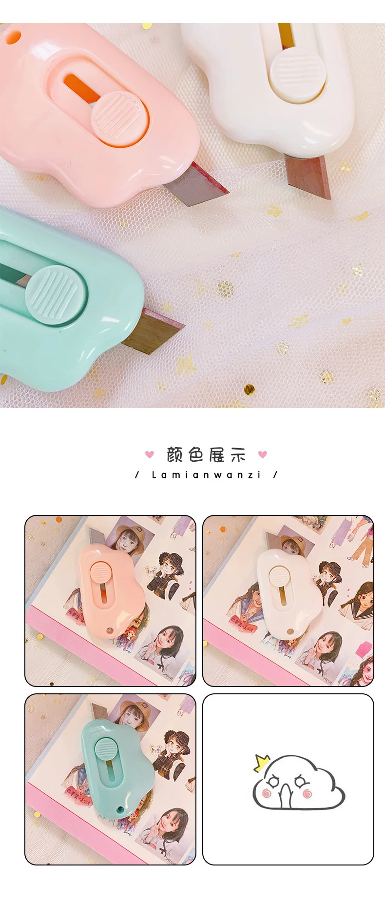 Ins Portable Mini Utility Knife Creative Simplicity Flaky Clouds Cute Cutter Telescopic Cutting Paper School Supplies Stationery |