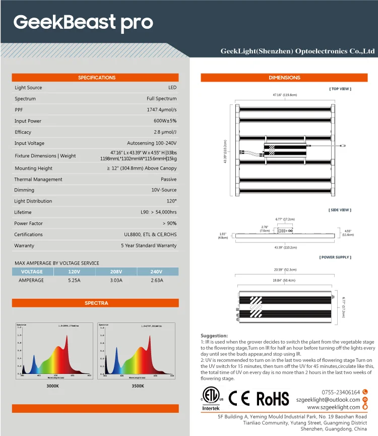 2020 Lm301b IR UV Switches Geek светильник 630w GeekBeast Pro Grow светильник Led