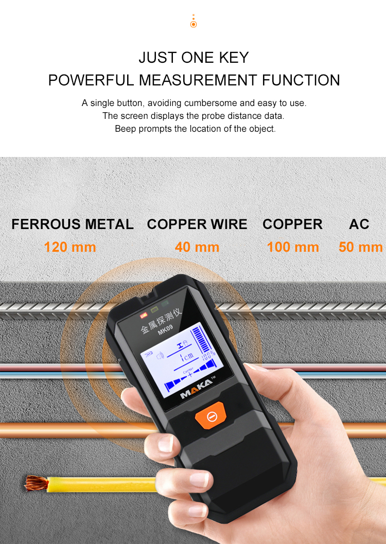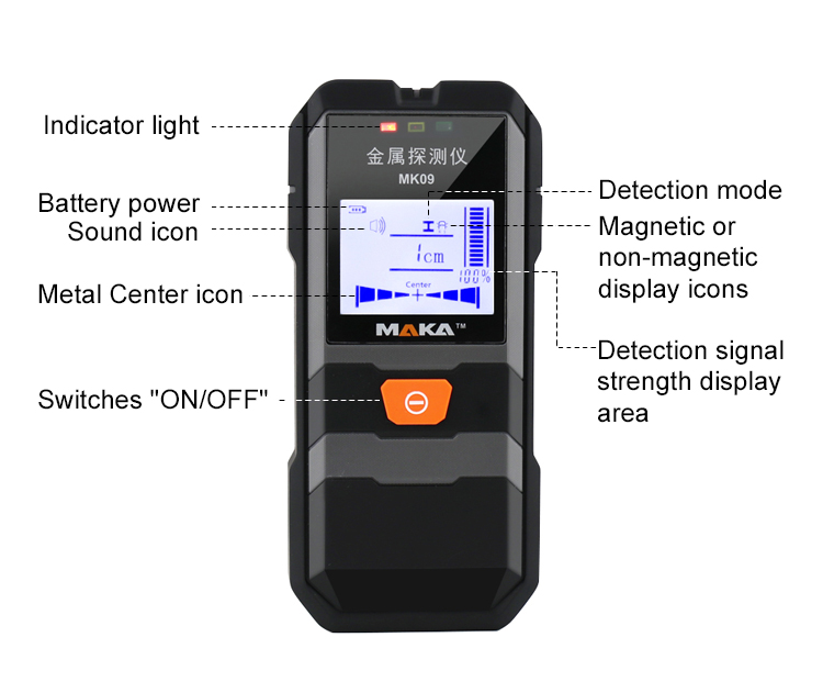 5. Область отображения глубины металла обнаружения (эта глубина относится к расстоянию между центральной точкой зоны обнаружения и измеренным объектом)
