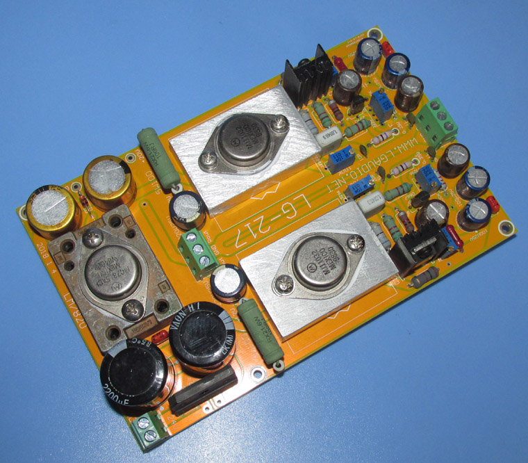 LG-217C одноконечный преусилитель чистого класса А двухканальный: Одноконтурный дополнительный усилитель класса А, промежуточный буферический выход класса А третьего уровня, общий Статический рабочий ток составляет около 200 миллиампер. Одноцветный звук класса А благородный и очаровательный, с сильным музыкальным вкусом, отличная производительность с низким искажением и широким частотным откликом, теплый вокал, Богатые детали, сильные и мощные басы, И большой динамический диапазон. Не упустите своих друзей. Эта хорошая звуковая линия от «AV Technique» может работать с источником питания переменного тока 24 В. Входная чувствительность этой платы усилителя высокая, и входной терминал должен управляться двойным потенциометром громкости 50K или 100K. Двухсторонняя позолоченная печатная плата, толщина платы 2 мм. Размер 167 × 105 мм, двойной моно дизайн с увеличенной схемой, одна точка заземления, Тихая линия. Характеристики этой печатной платы следующие: силовая трубка и триодный графический инструмент AC и DC динамическое точное соответствие, что очень важно для обеспечения звукового эффекта. 2: золотое уплотнение высокого тока, трехклеммный регулятор напряжения, вход трубки D667, C2073 или C2562 для продвижения MJ11032 Золотое уплотнение высокой мощности трубки класса А. 3: характеристики цветного защитного покрытия других полимеров обладают высокой главным образом 0,5 W, и наценка безопасный и надежный. 4: золотые конденсаторы для многих дополнительных компонентов. Монтажная плата должна обратить внимание на следующие моменты: 1; Монтажная плата должна быть установлена в железный чехол, чехол соединен с землей большого фильтрующего конденсатора печатной платы, И Железный чехол играет защитную роль для предотвращения электромагнитных помех. 2; 50K или 100K двойной-подключенный потенциометр громкости должен быть установлен на входном сигнале, чтобы улучшить соотношение сигнал/шум входного сигнала. Используйте экранированные провода для входных и выходных сигнальных линий, а защитный слой должен быть заземлен. 3; Силовой трансформатор не должен быть слишком близко к входному терминалу сигнала. Первичные и вторичные экранирующие клеммы силового трансформатора должны быть подключены к земле большого фильтрующего конденсатора печатной платы, чтобы предотвратить помехи от источника питания 220 В. Обратите внимание на вышеуказанные пункты, вы можете работать спокойно. Декларирование: компоненты на готовой доске отличаются из-за различных партий сборки. Типы, бренды, модели и характеристики некоторых компонентов будут немного отличаться. Некоторые компоненты на печатной плате-это товары, разбираемые вручную, и готовая плата обычно продается