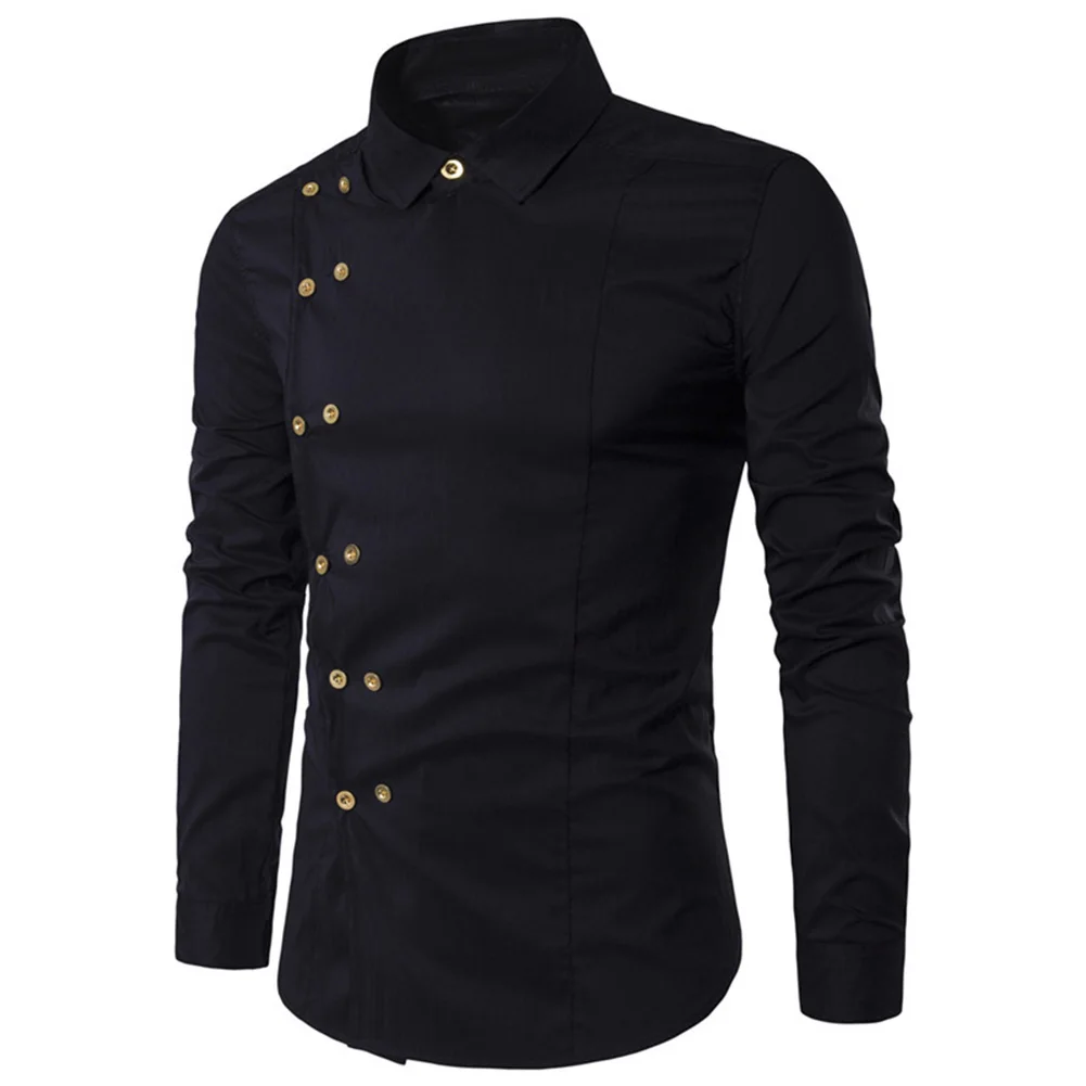 Мужская хлопковая рубашка с длинным рукавом, отложным воротником, диагональным двубортом и пуговицами