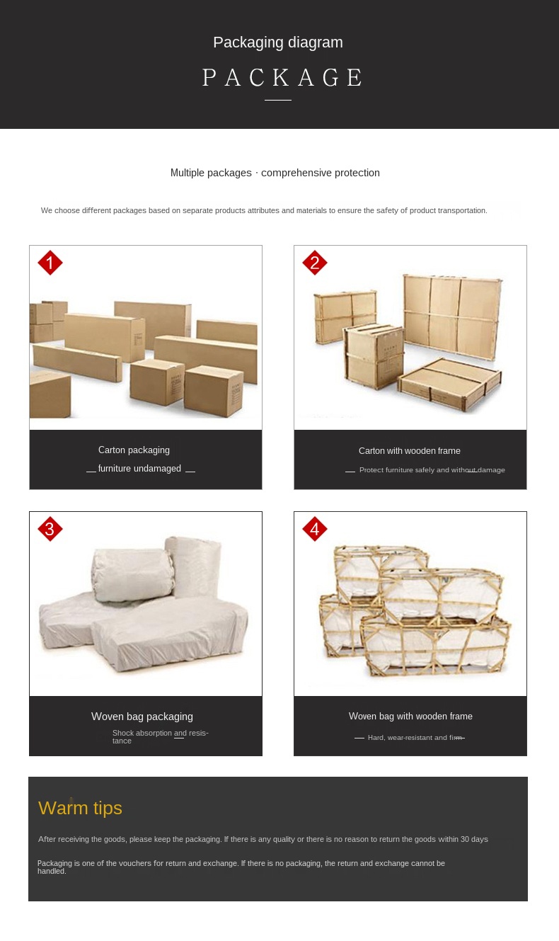 -Чтобы убедиться, что это лучшая ценность, эта мебель непосредственно с нашего собственного завода в Китае. -Вся мебель изготавливается вручную нашими работами, которые имеют дюжину лет опыта. Когда я получу мебель? Время доставки-мебель будет отправлена во Францию или Испанию в течение 7-12 недель вокруг вашего заказа. -Процесс доставки специально разработан для большой мебели, чтобы обеспечить экономичность и большую заботу. Доставка грузовиком-по прибытии в Европу, наш партнер доставит мебель в ваш дом в течение 5-15 дней;-между тем вы получите электронное письмо с номером отслеживания;