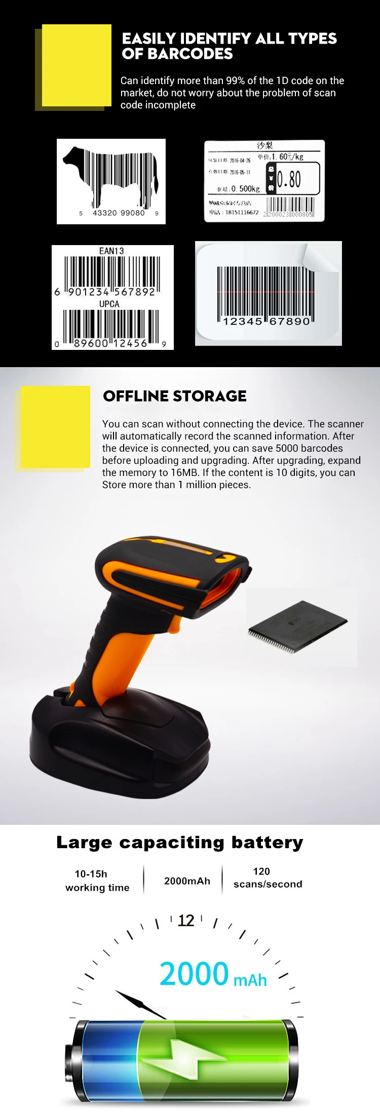 Память | 16 Мб (хранить около 1 миллиона 10 цифровых штрих-кодов) |