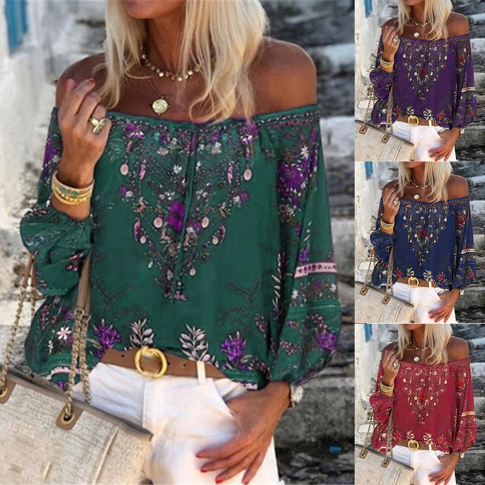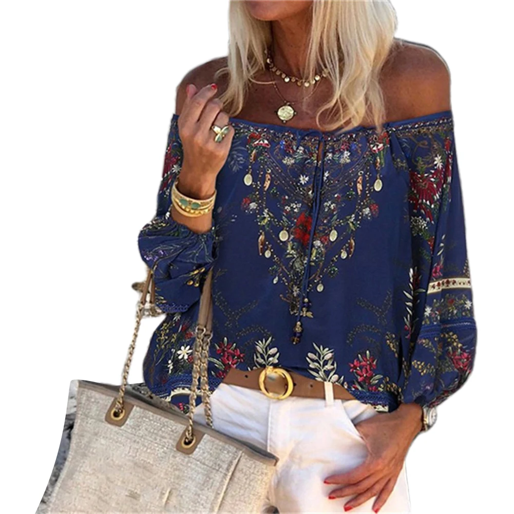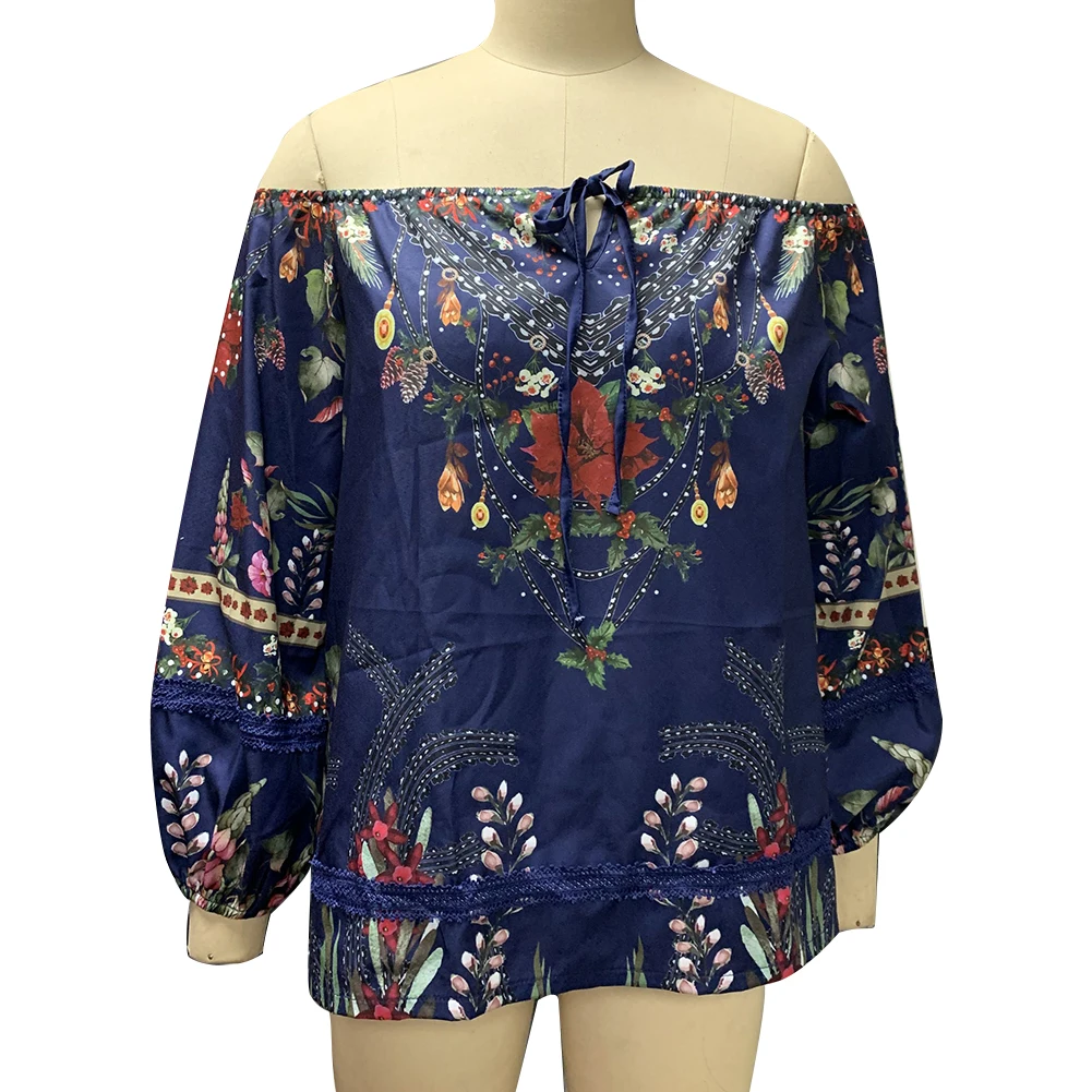 Женская винтажная блузка для шнуровки для сшивания с открытыми плечами и цветочным принтом