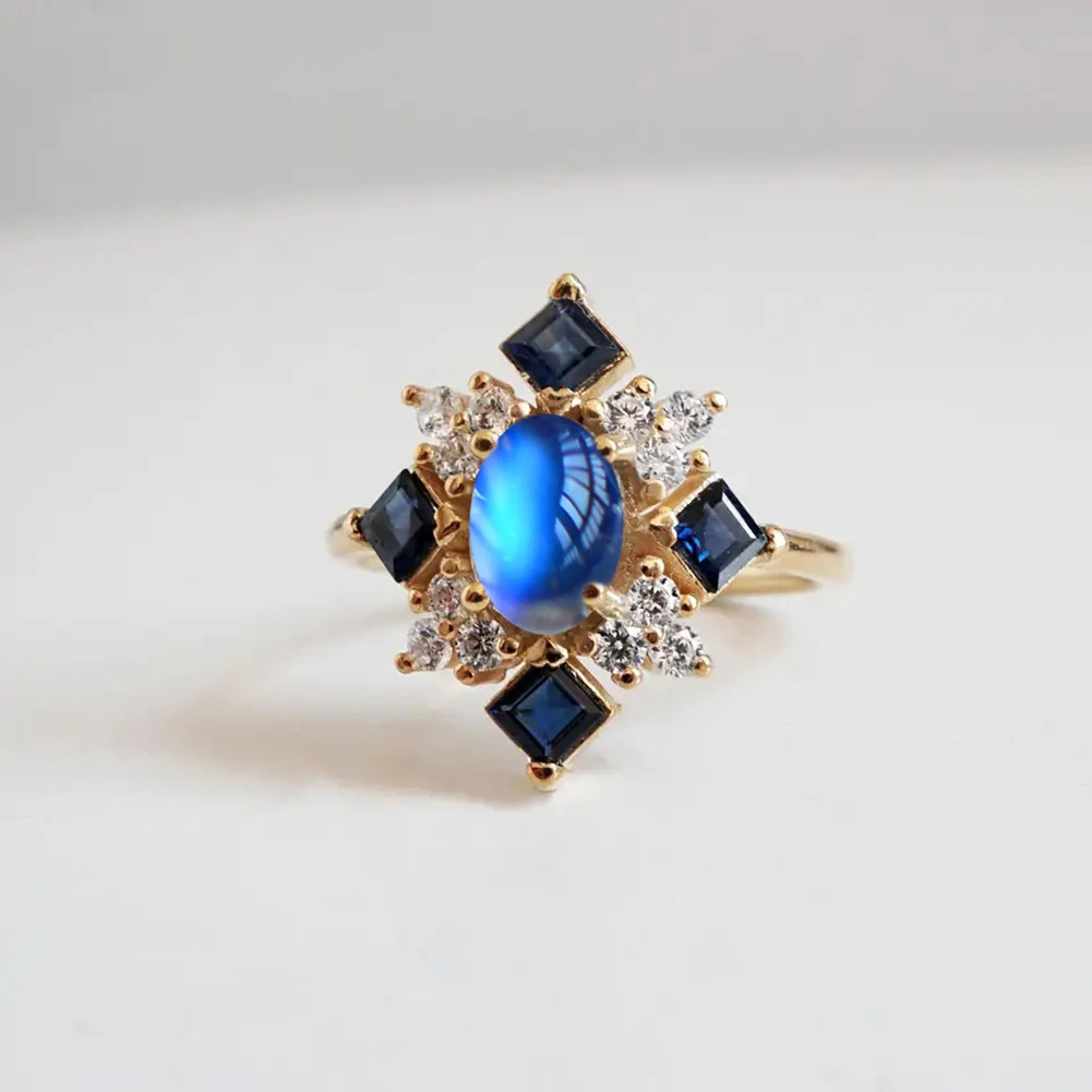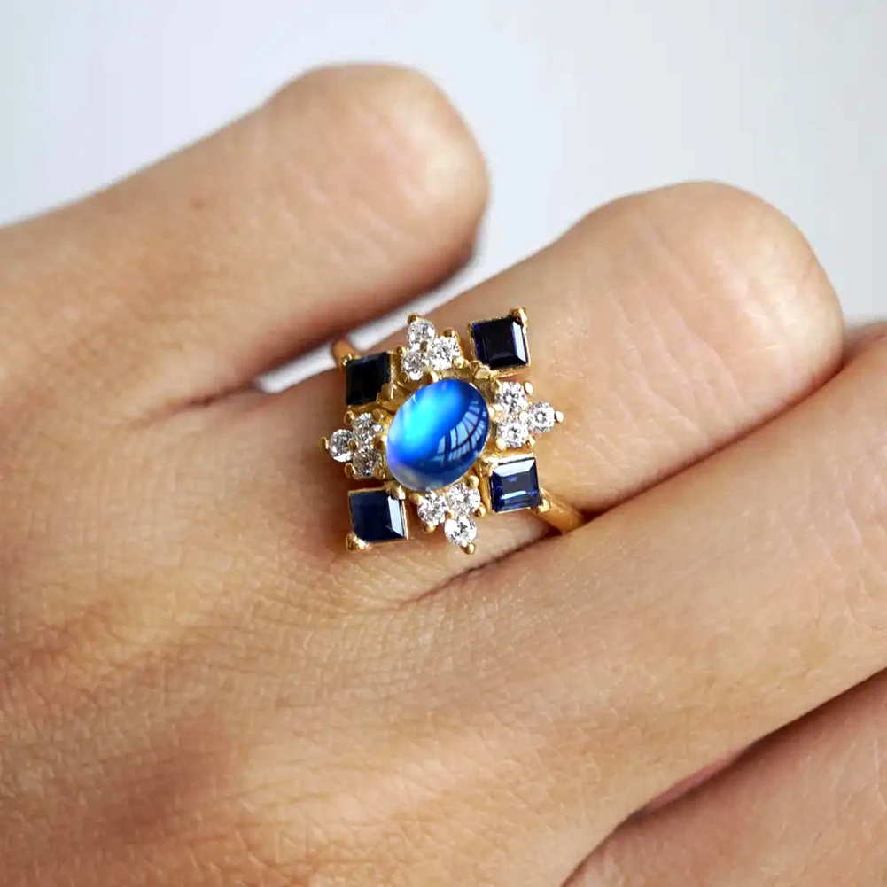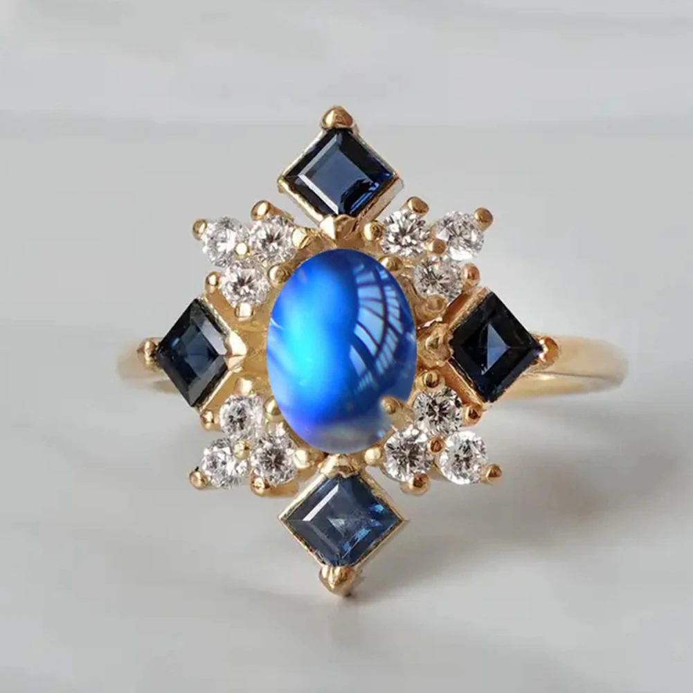 Искусственный лунный камень, квадратные стразы, Женское кольцо на палец для вечеринки, помолвки, ювелирное изделие, подарок