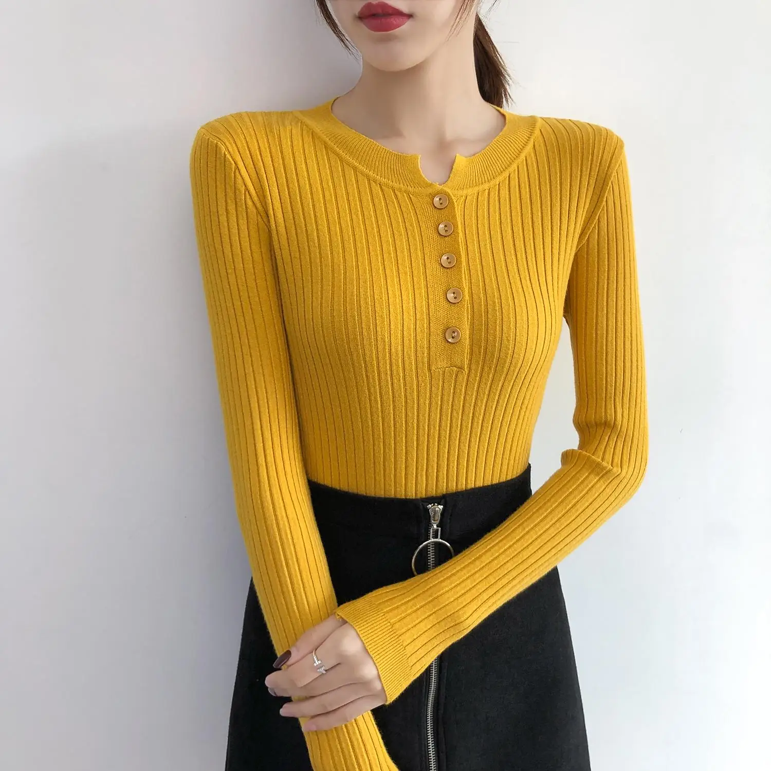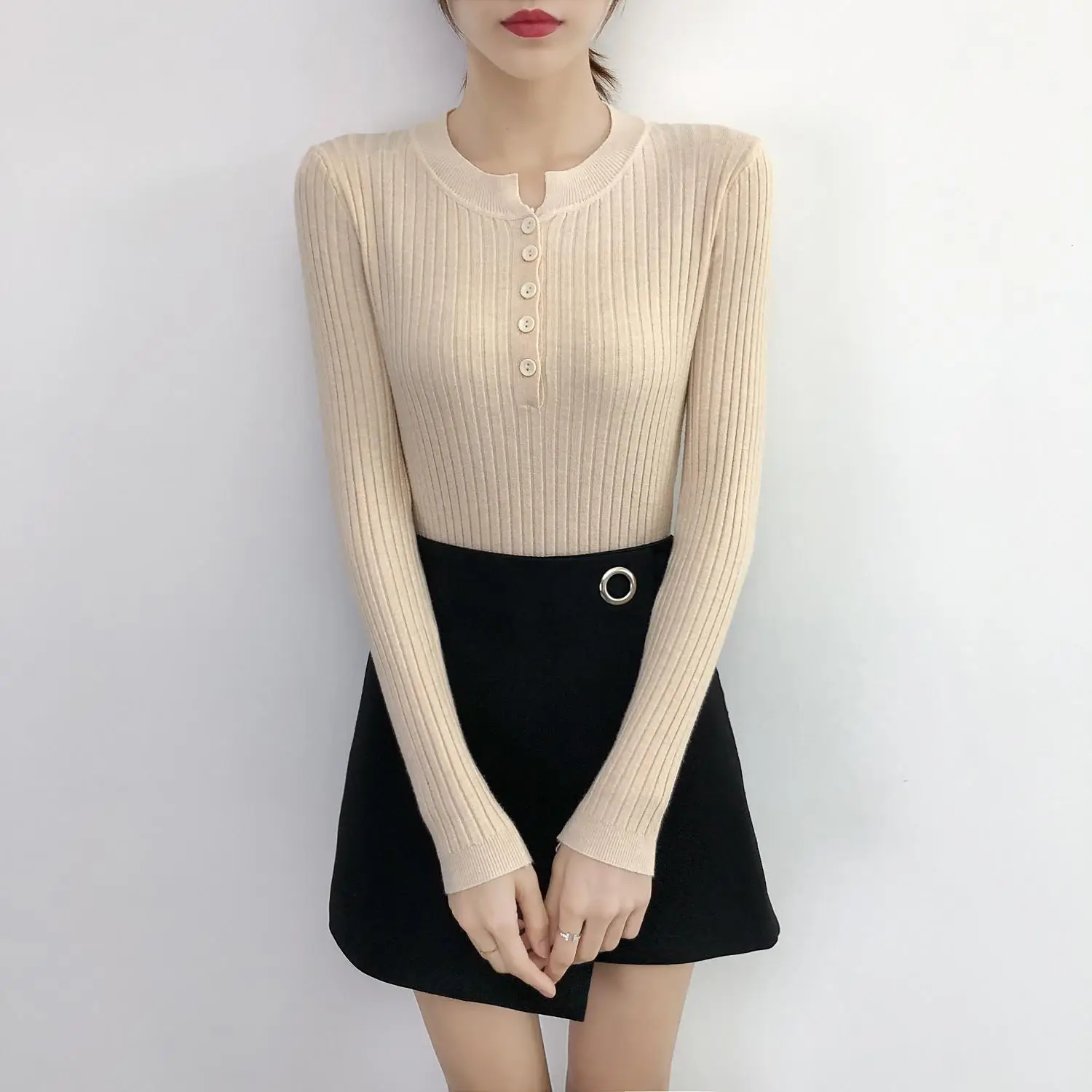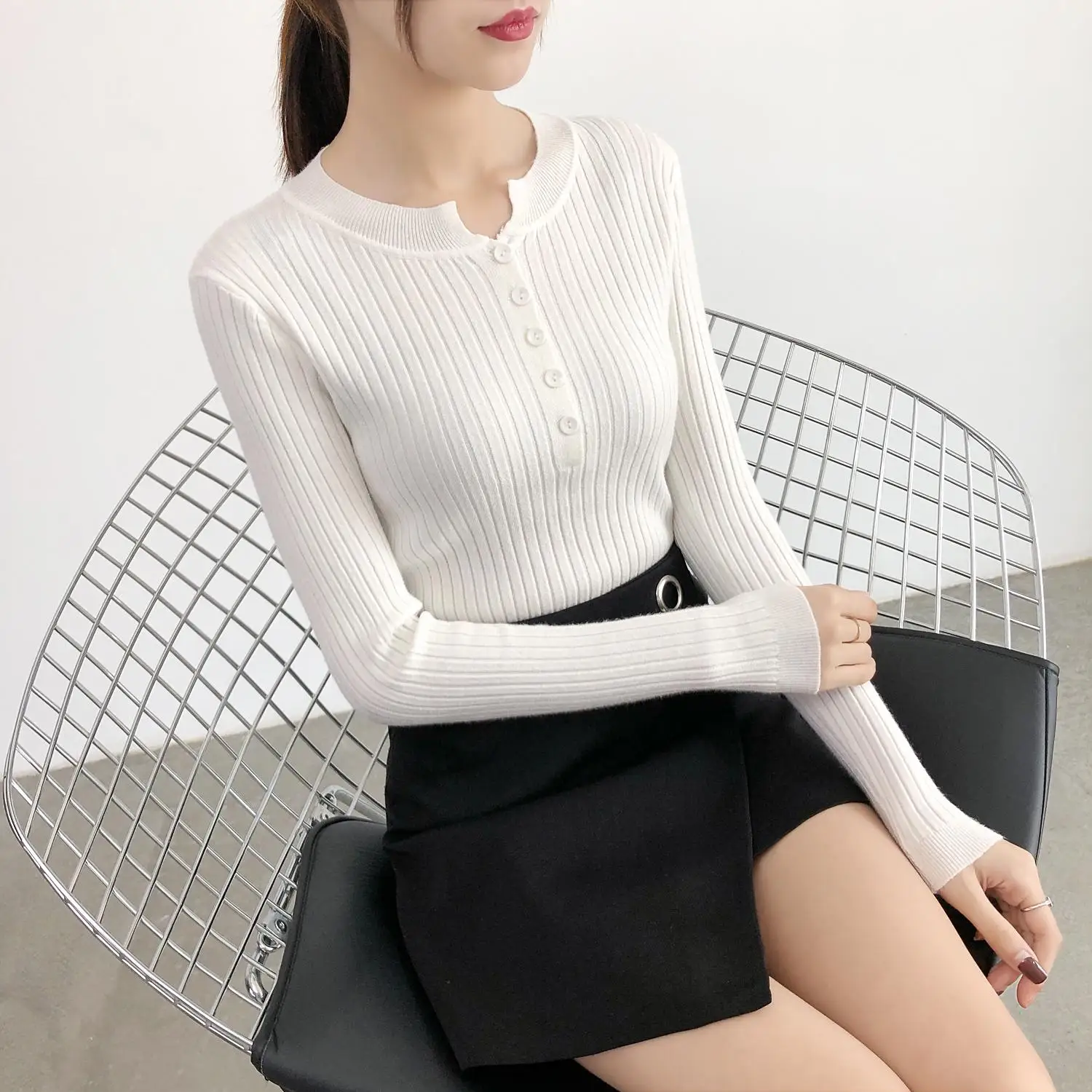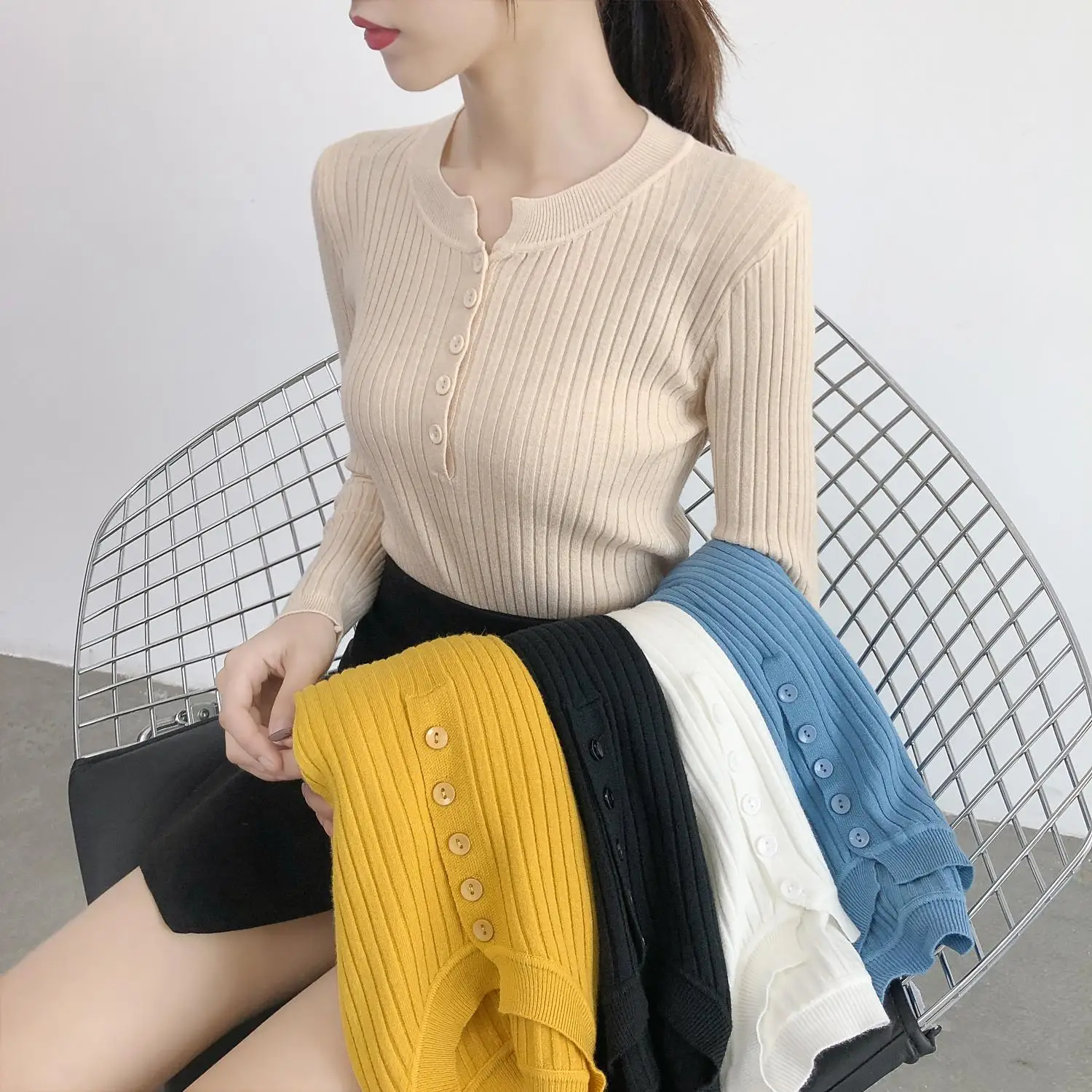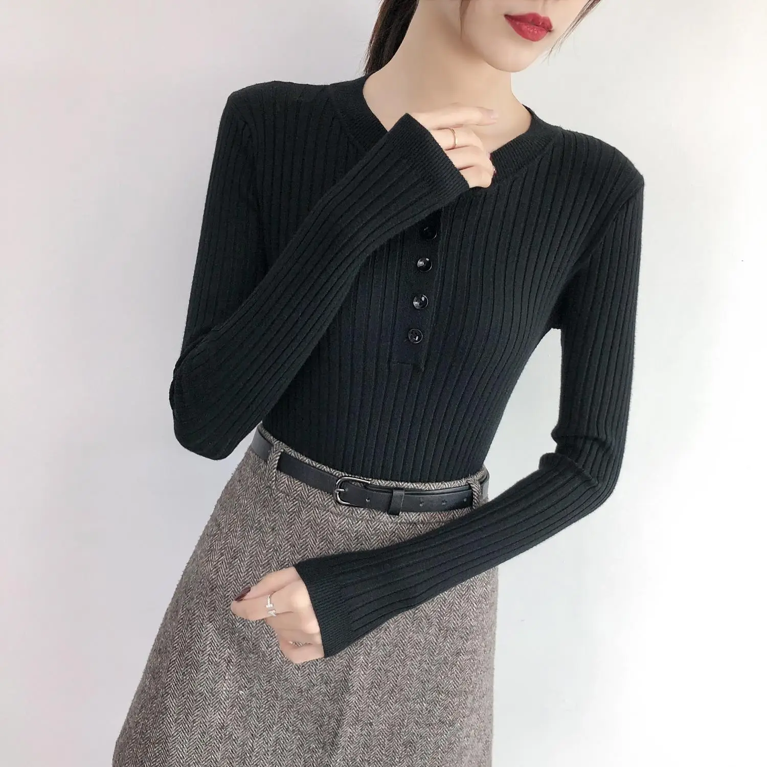 Женский трикотажный свитер на пуговицах с круглым вырезом | Женская одежда