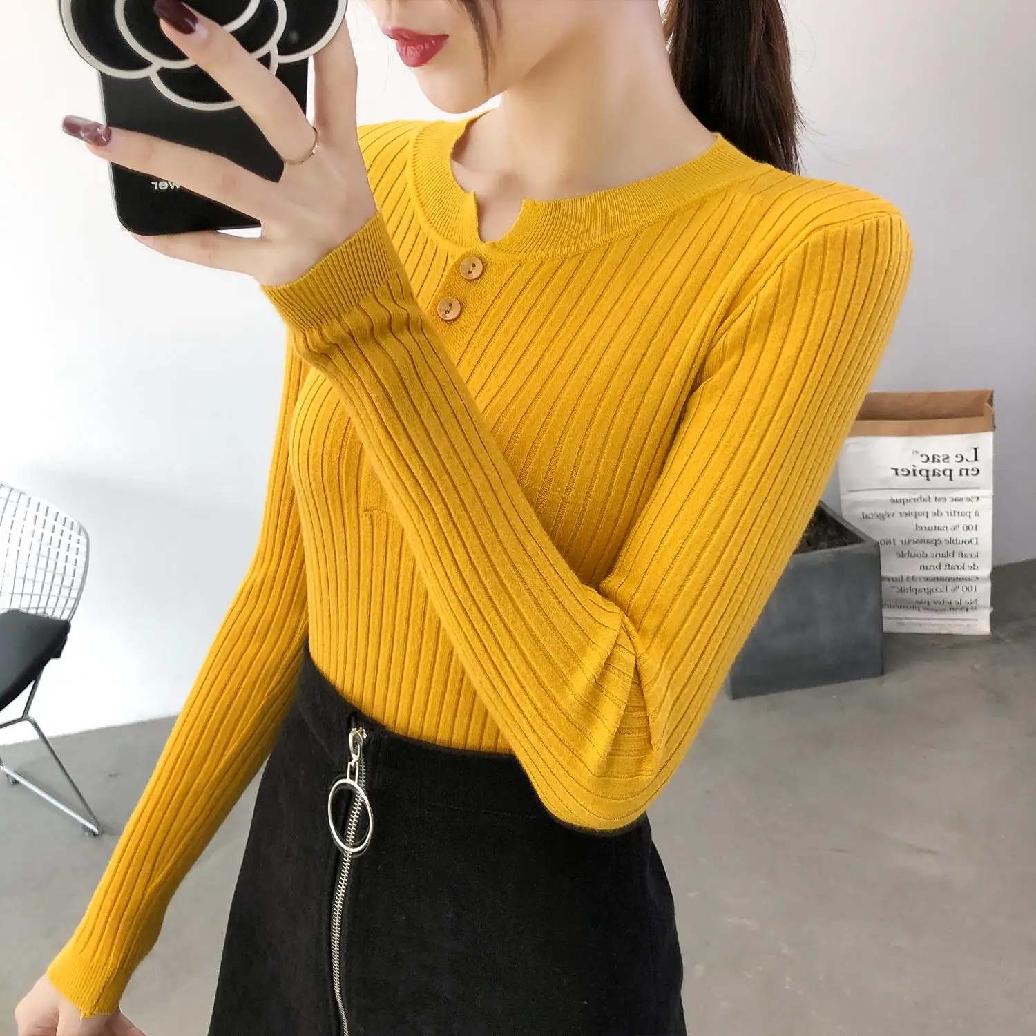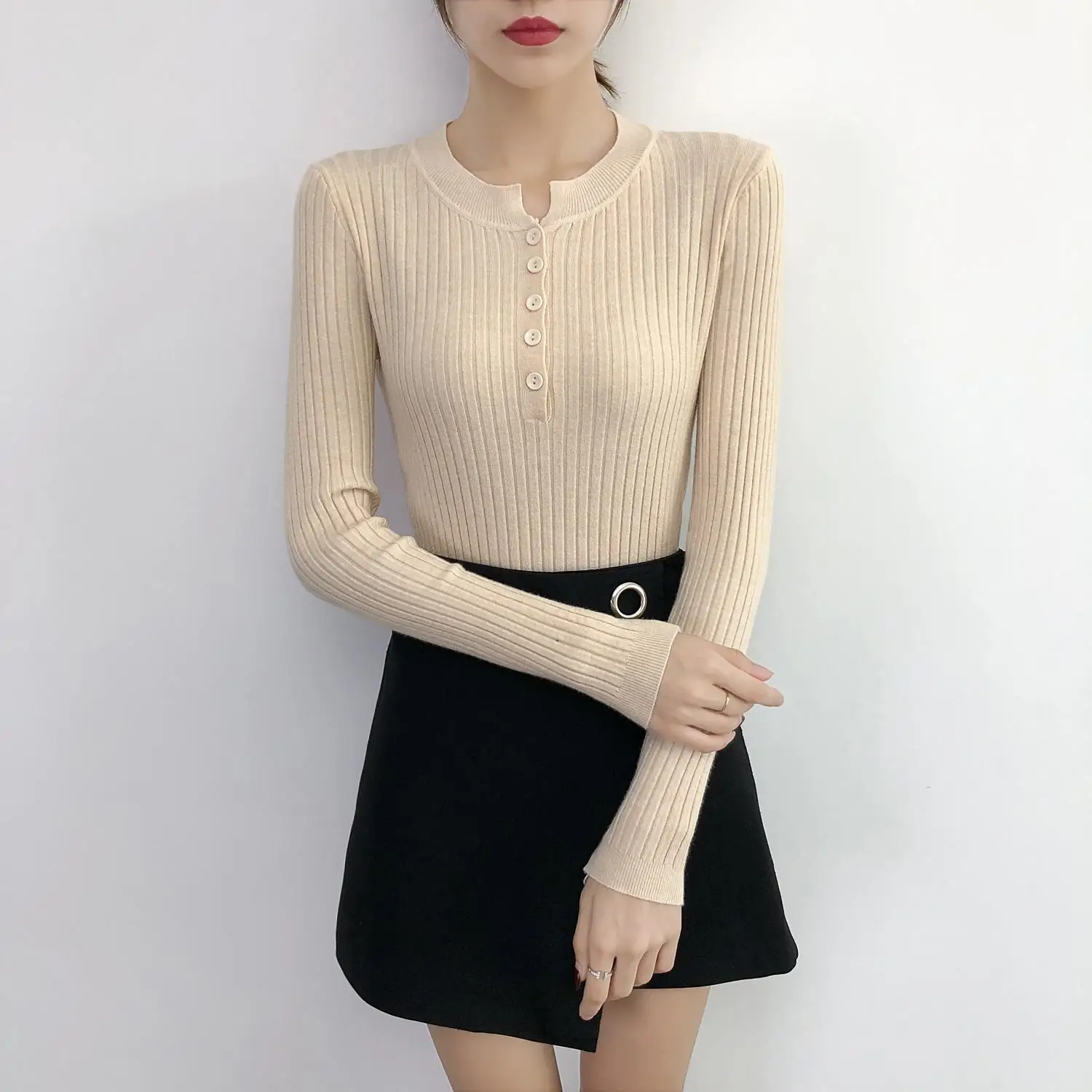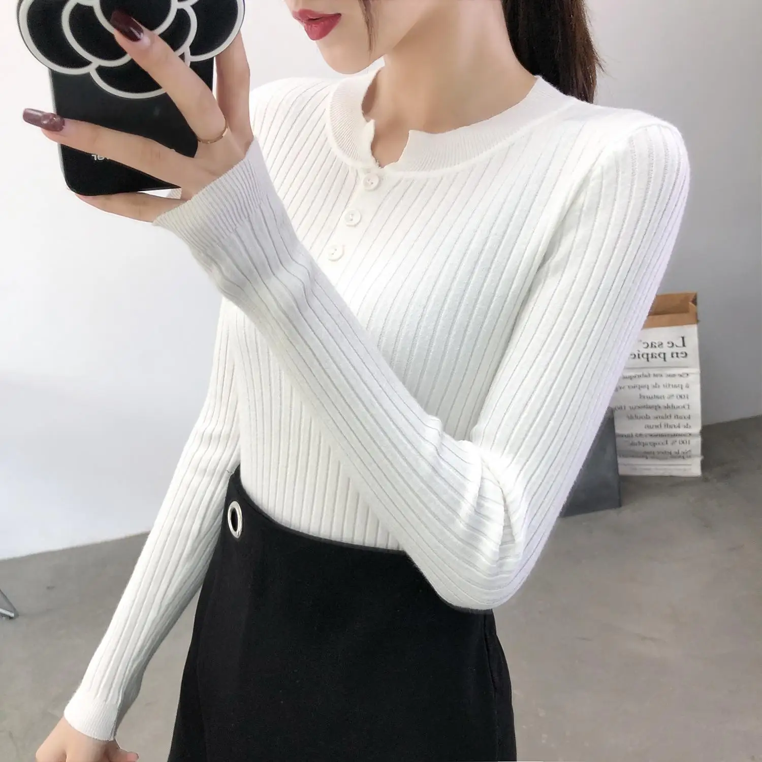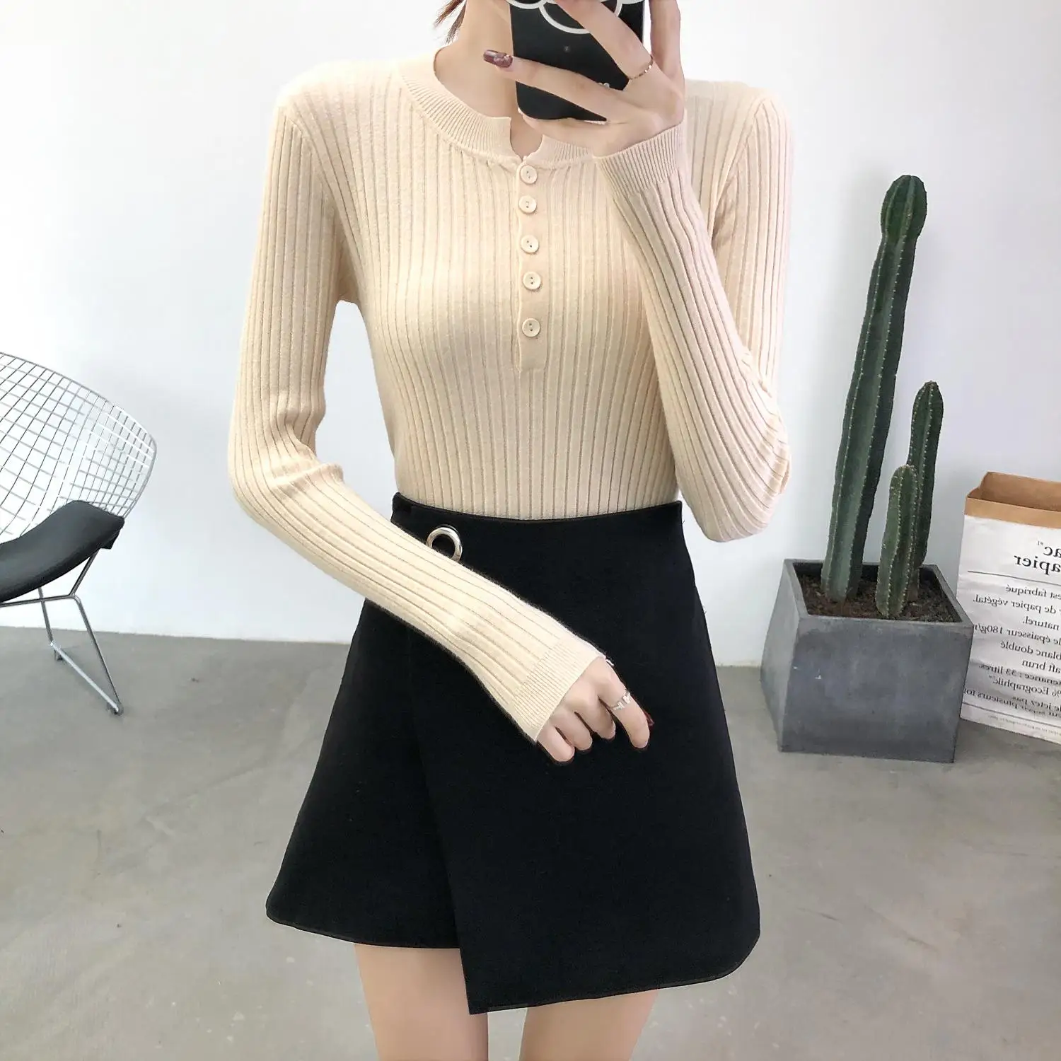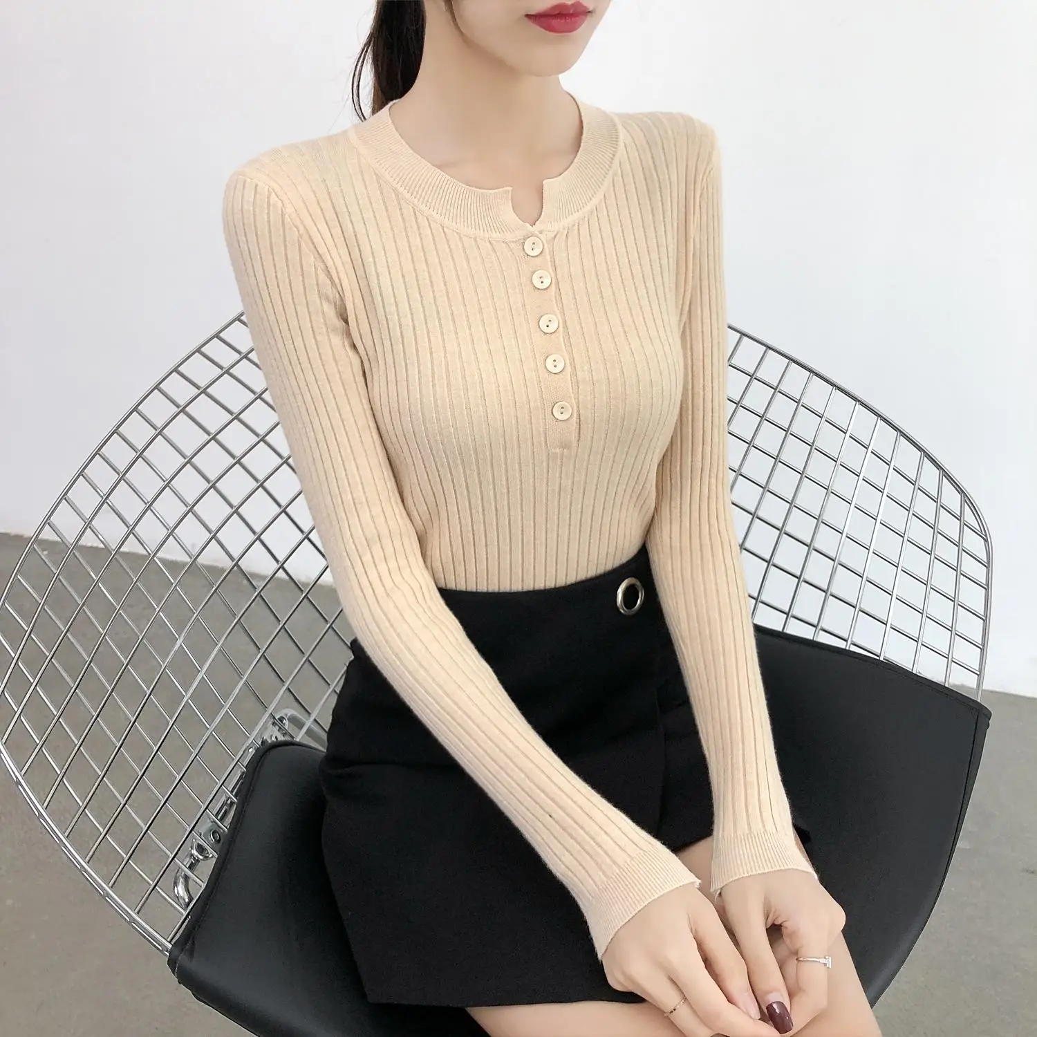 Женский трикотажный свитер на пуговицах с круглым вырезом | Женская одежда
