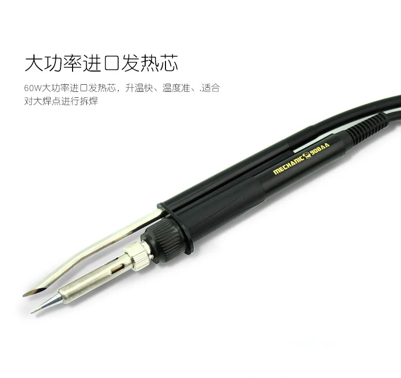 60 Вт высокомощный импортный нагревательный сердечник, быстрый нагрев, точная температура, подходит для большой разборки припоя и двухсторонней монтажной платы, обе стороны соединены медным листом, который не легко быть поврежденным и имеет высокую стабильность и уменьшает ситуацию ложной сварки и ложной сварки.