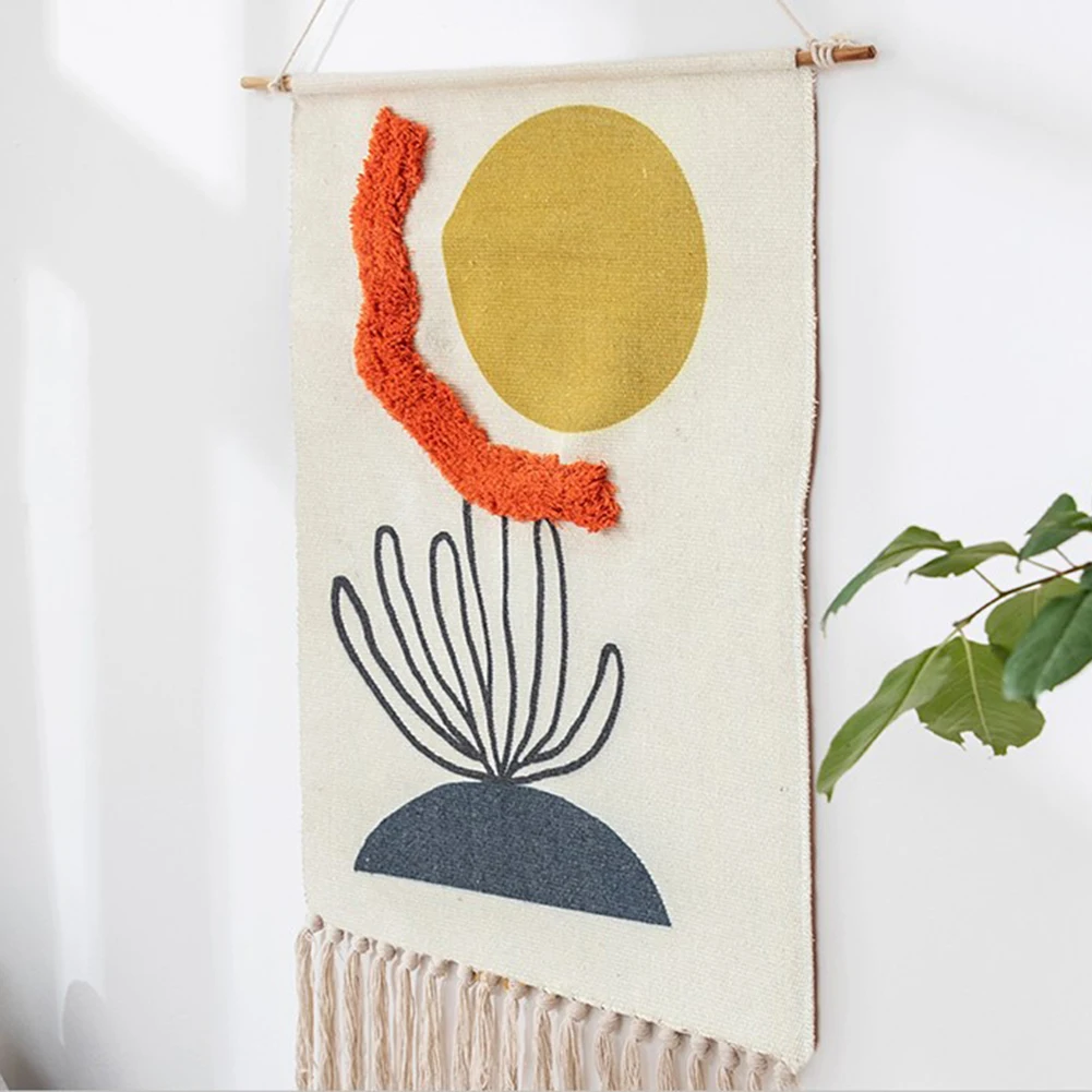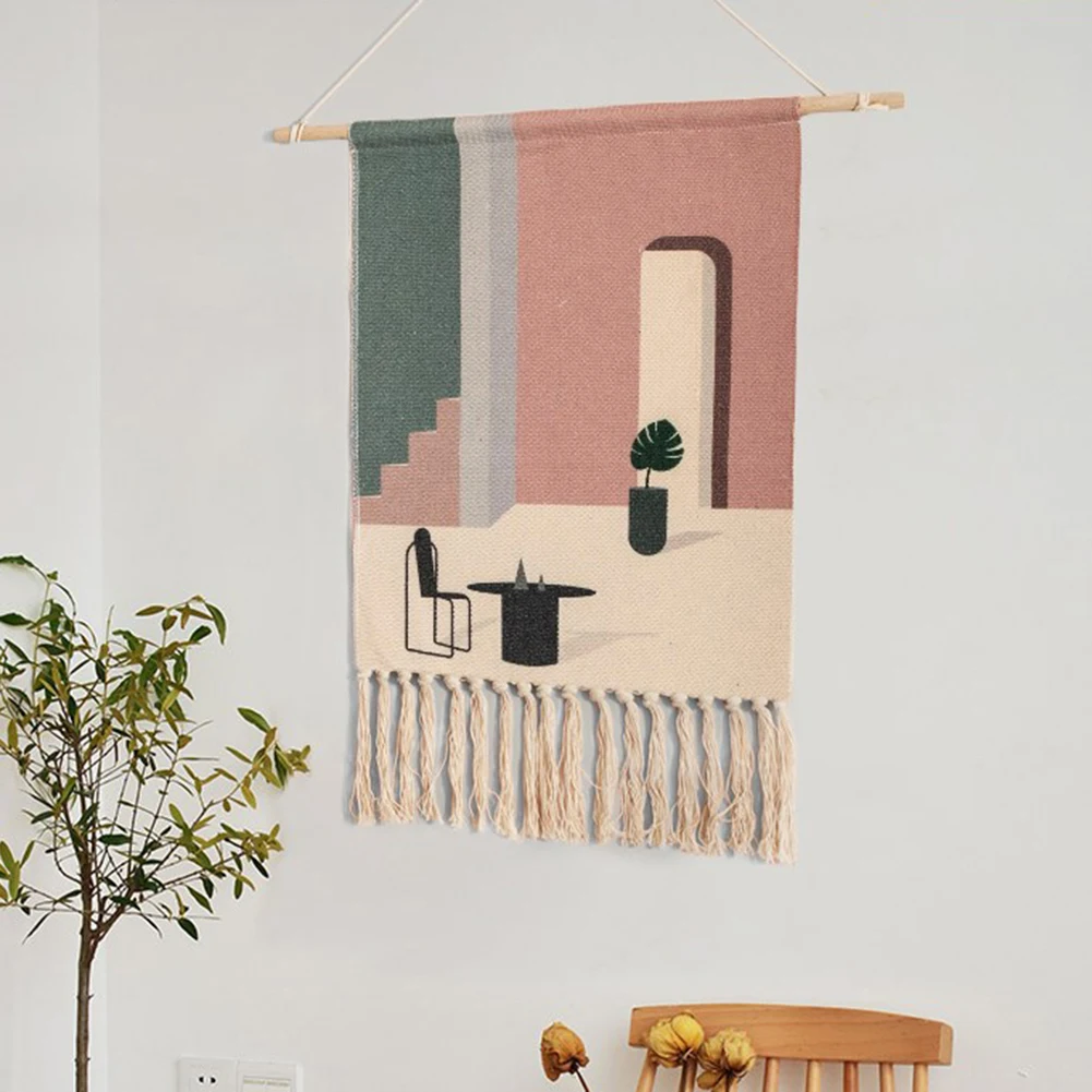 Гобелен в стиле бохо из хлопка и льна с кисточками, подвесной кулон, картина для домашнего отеля, Настенный декор
