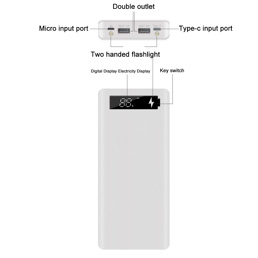Портативный микро USB Type-C 18650 корпус батареи LCD DIY Мобильный Внешний Аккумулятор Чехол