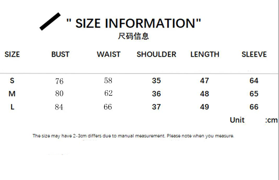 S Длина: 47 Бюст: 84 Рукав: 64 Плечо: 35 Талия: 70
