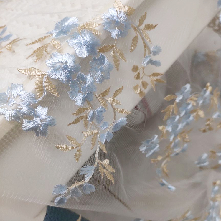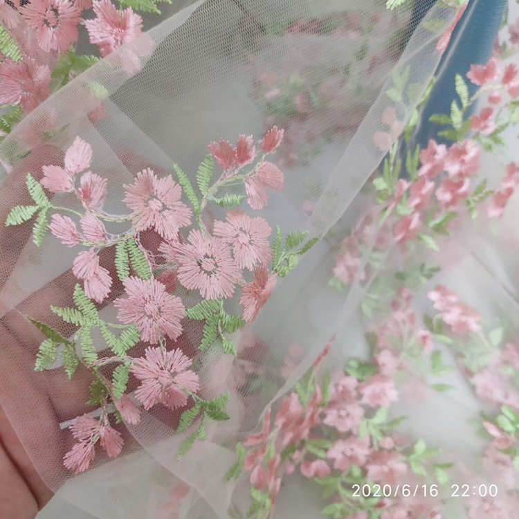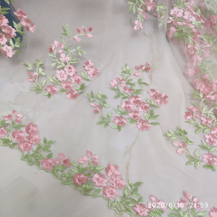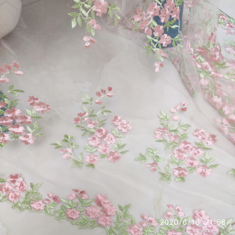 Красивая фатиновая кружевная ткань, расшитая цветными цветами и листьями, сетка цвета слоновой кости, кружевная ткань.