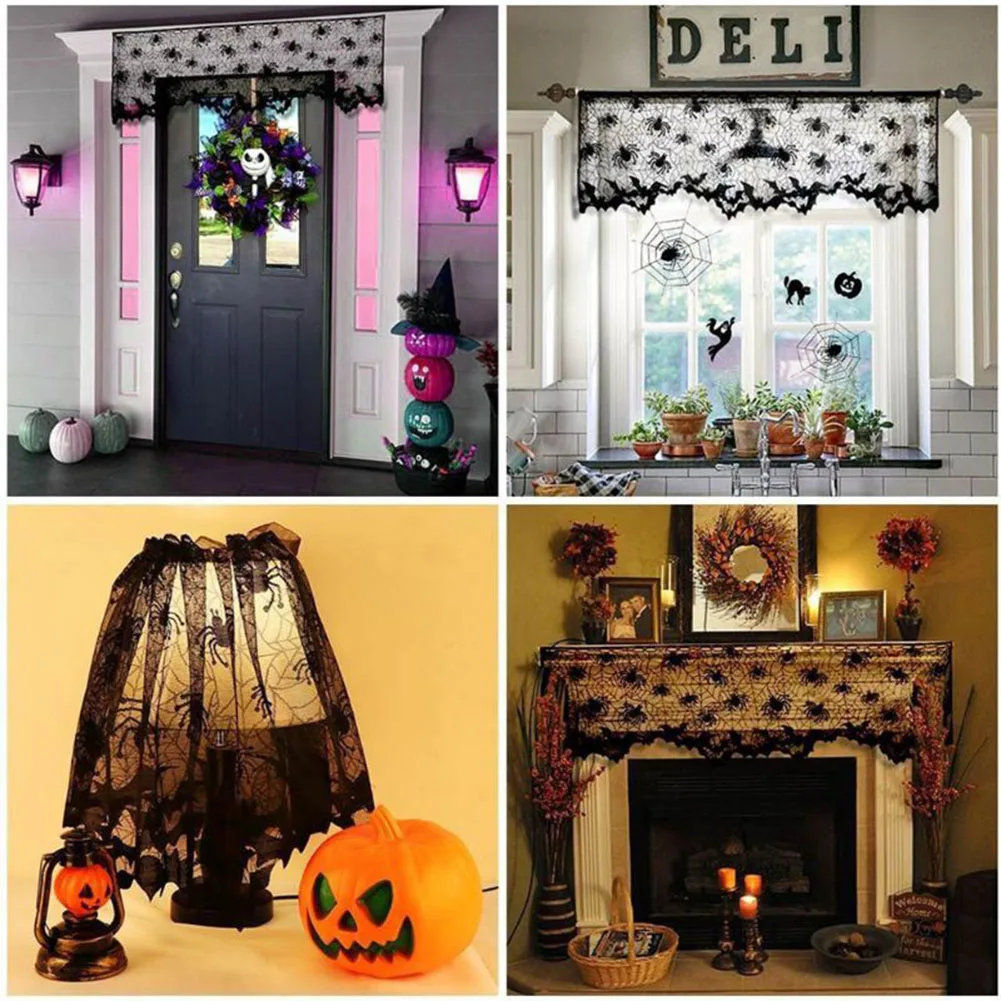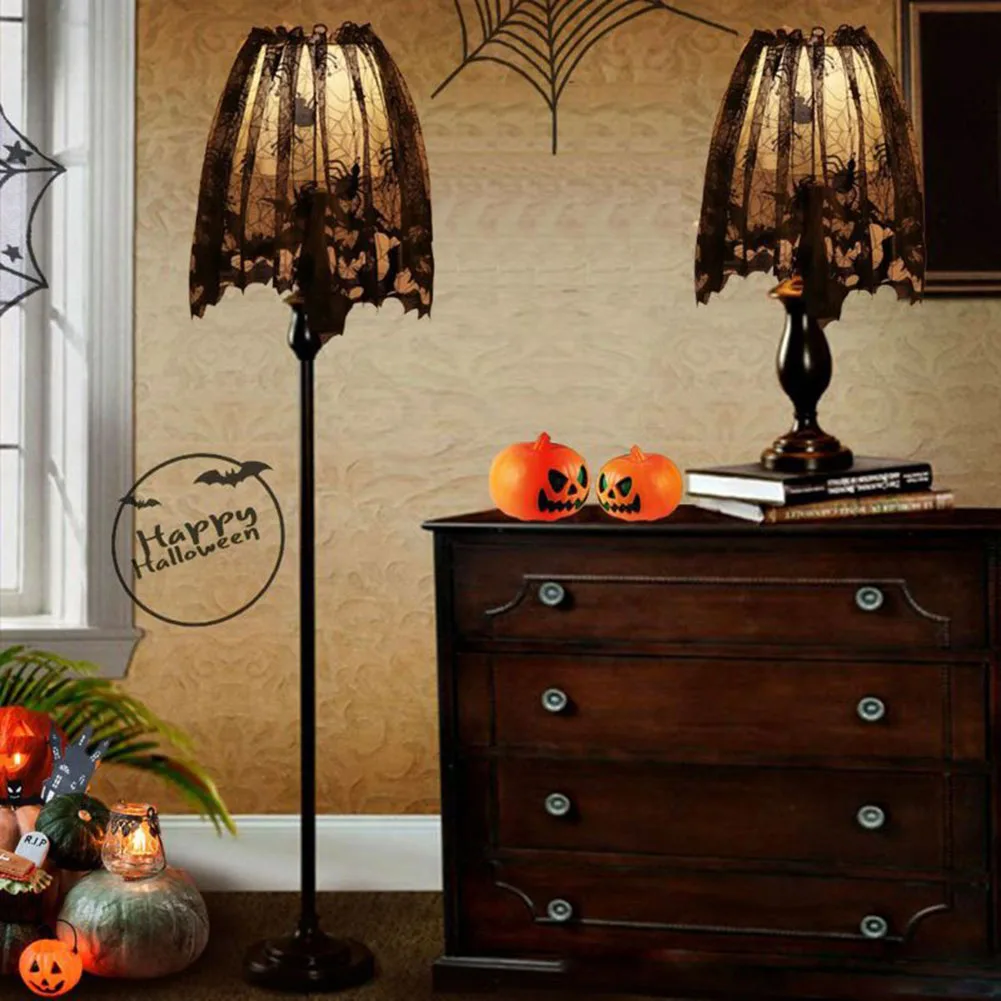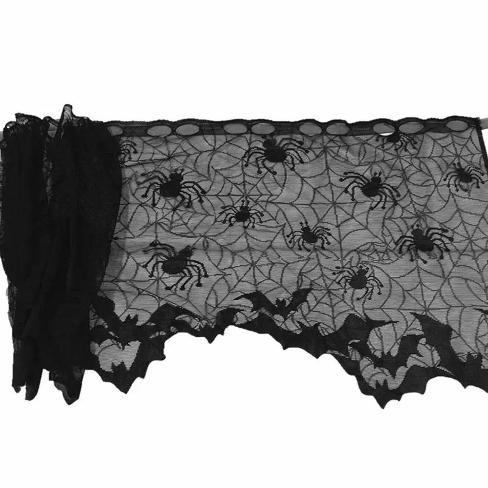 Хэллоуин летучая мышь паутина абажур крышка кружевная лента занавеска украшение для камина