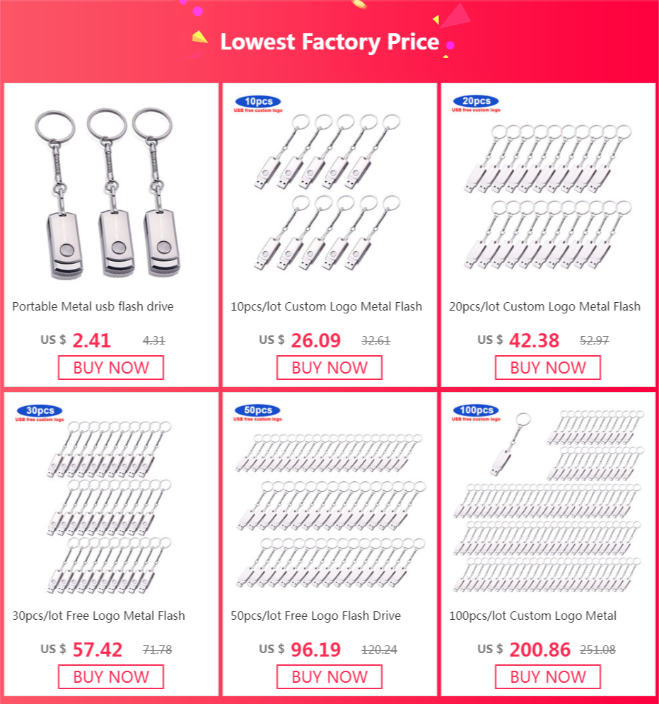20pcs/lot Custom Logo Metal Flash Drive Pen 4GB 8GB 16GB 32GB 64GB Pendrive USB 2.0 Memory Stick Cle for Photograph |