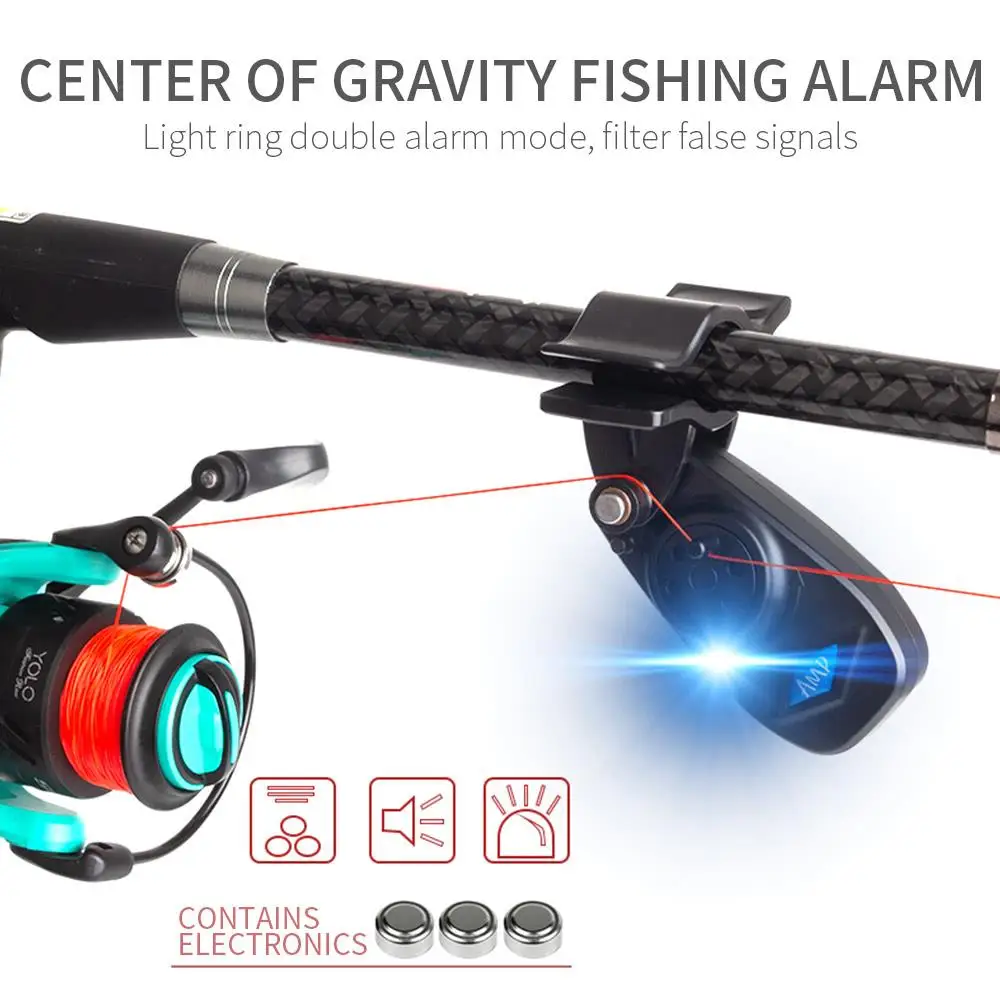 1. Использование центра силы тяжести для запуска устройства сигнализации является более чувствительным. Вы будете уведомлены сразу же, когда рыба укусывает, сигнал тревоги может достигать 80 дБ. (Примечание: громкость не регулируется), Примечание: лучший угол использования сигнала тревоги о укусе рыбы заключается в том, что удочка параллельна воде или не выше 40 °.