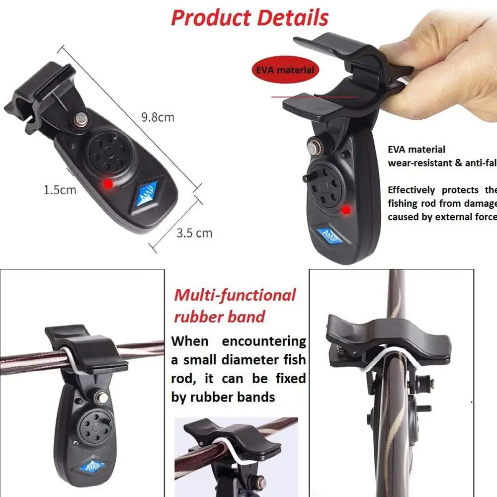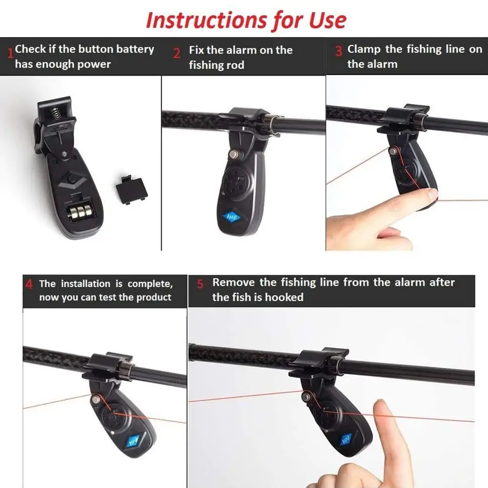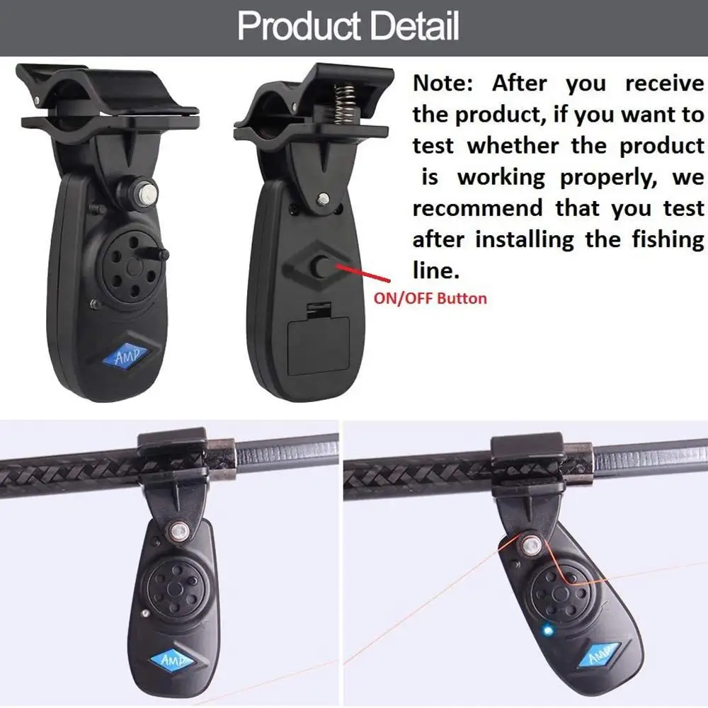 4. Маленький и изысканный дизайн, легко носить с собой и устанавливать, надежный по качеству, практичный и полный функций. Он очень прост в использовании, просто Закрепите его на удочке и включите переключатель, чтобы начать работу. Посылка включает в себя: 3 индикатора укуса для рыбалки (включая 3 LR44 батареи для каждого будильника).